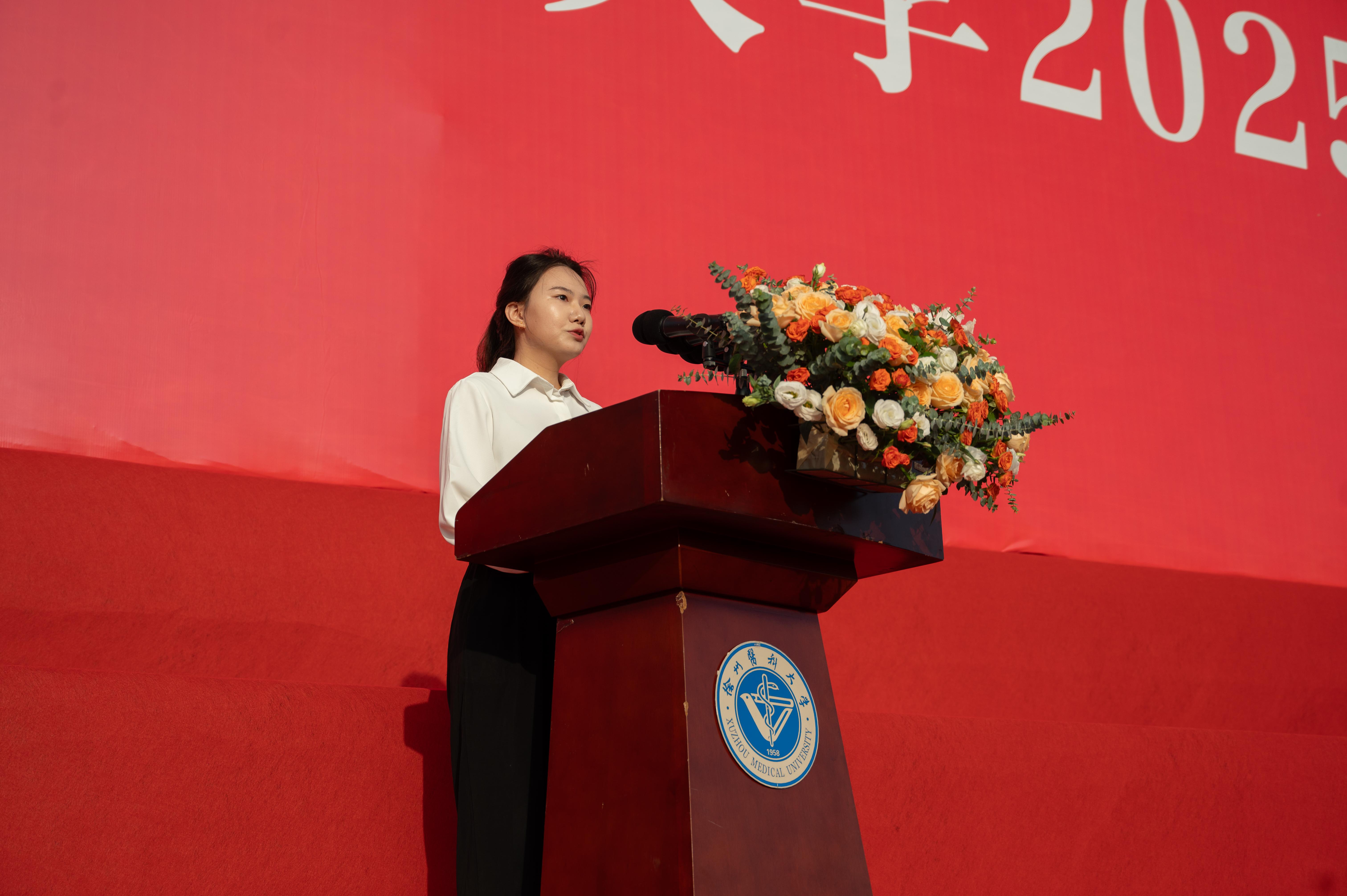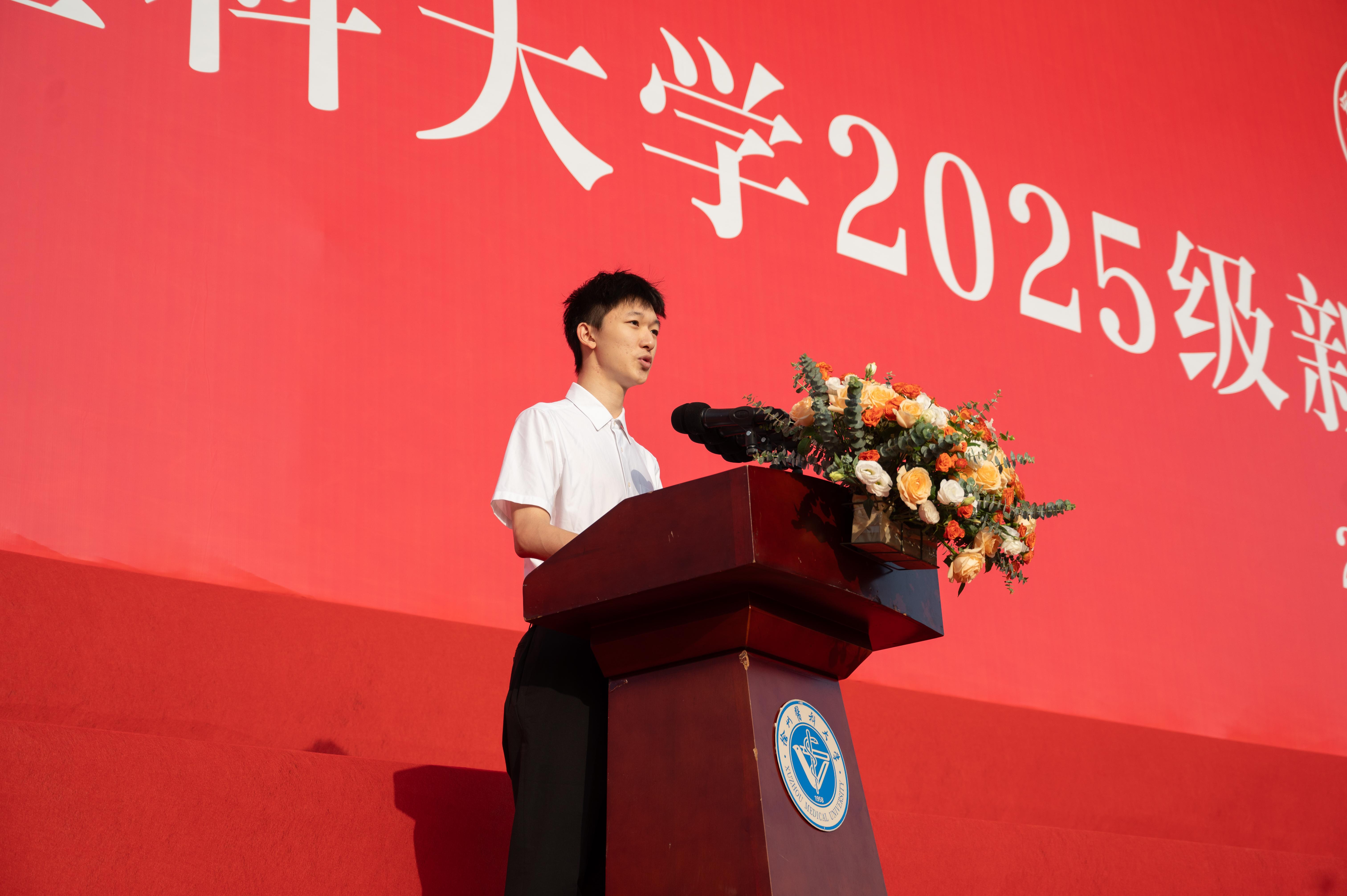 “与徐医的相遇,是爱我所爱的坚定抉择,是行我所行的奋力奔赴。”本科生新生代表、第一临床医捕鱼达人 临床医学专业卞振宇同学围绕“选择”“破圈”“梦想”三个关键词,与大家分享了自己对未来的思考,决心秉承“以德载医、博学创新”校训,筑牢专业根基,锤炼医德医术,努力成长为守护健康、攻克医学难题的新生力量,为健康中国建设贡献徐医学子的青春与智慧。
