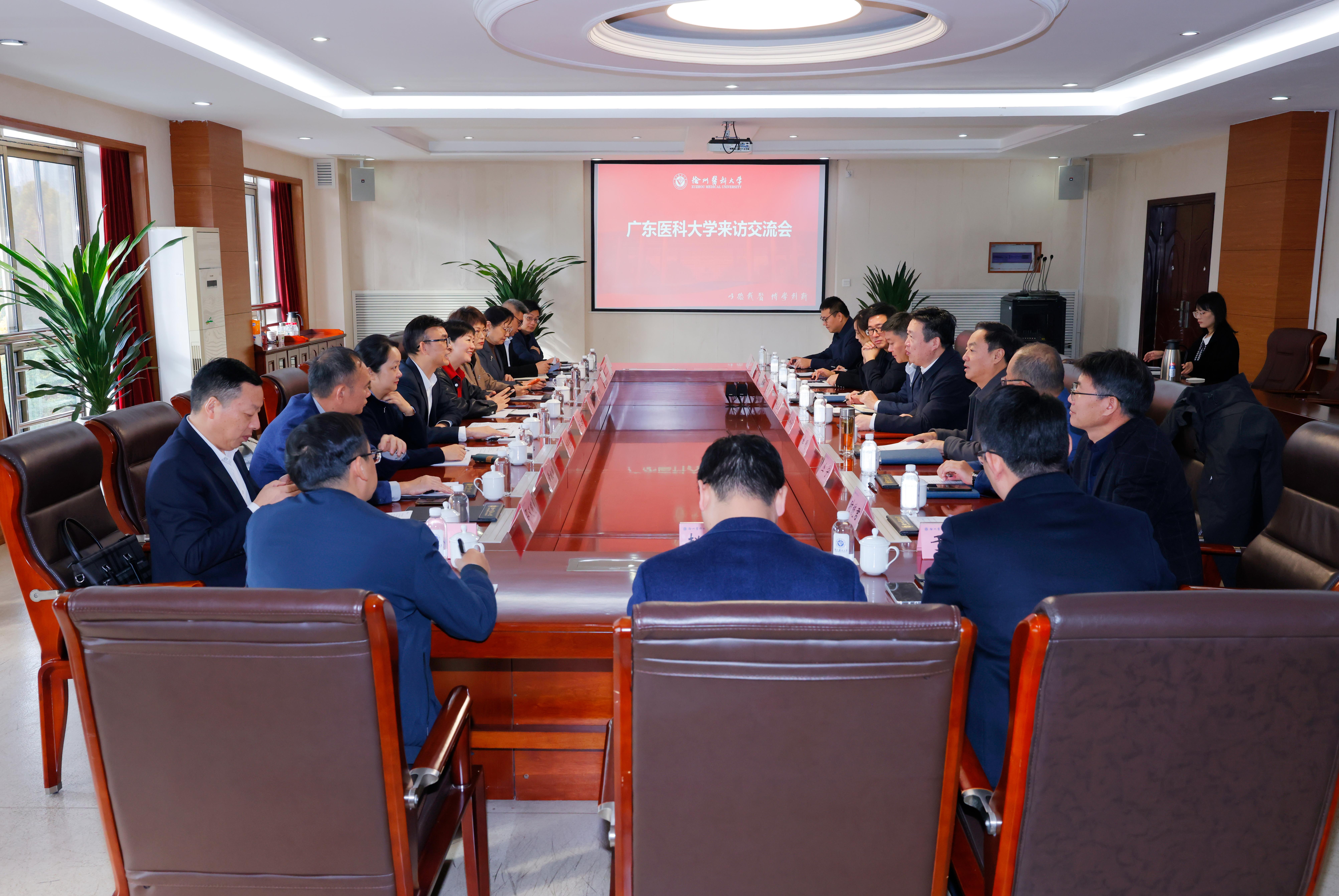 11月11日上午,广东医科大学党委副书记黄达海一行来校交流。校党委副书记、副校长徐海波出席并主持座谈会,校党委常委、组织部部长杜刚,人事处、科技处、研究生院、马克思主义捕鱼达人 、管理捕鱼达人 、宣传部、学工部以及徐医附院等相关单位负责人参加座谈交流。