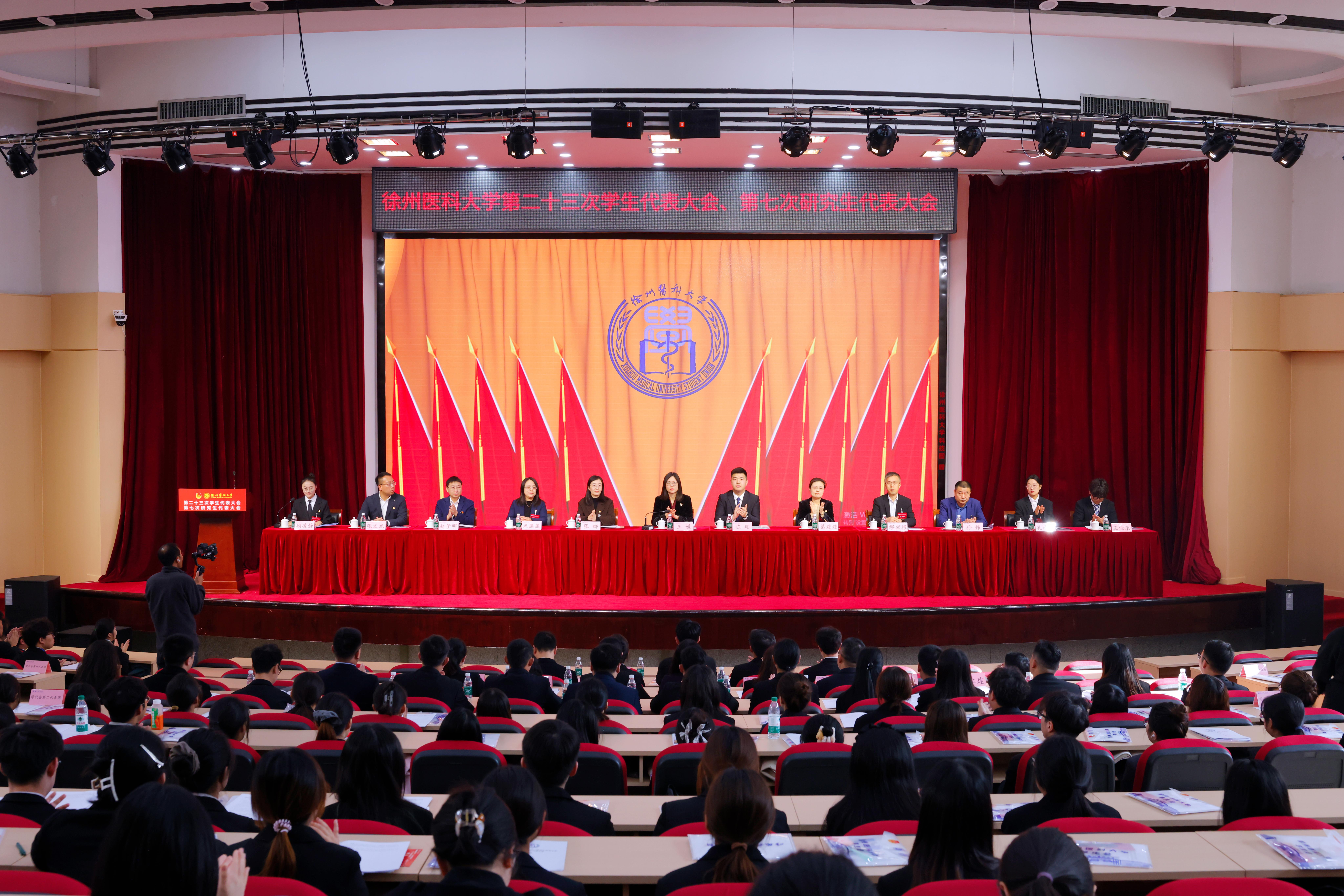 11月16日,捕鱼达人 第二十三次学生代表大会、第七次研究生代表大会在主校区学术报告厅召开。校党委常委、副校长王媛,江苏省学生联合会驻会主席陈硕,徐州团市委副书记张娜、学少部部长李畅,学工、研工、教务、后勤、团委等部门相关领导,捕鱼达人 学生工作副书记、团委书记,兄弟高校学生会代表等应邀出席会议。