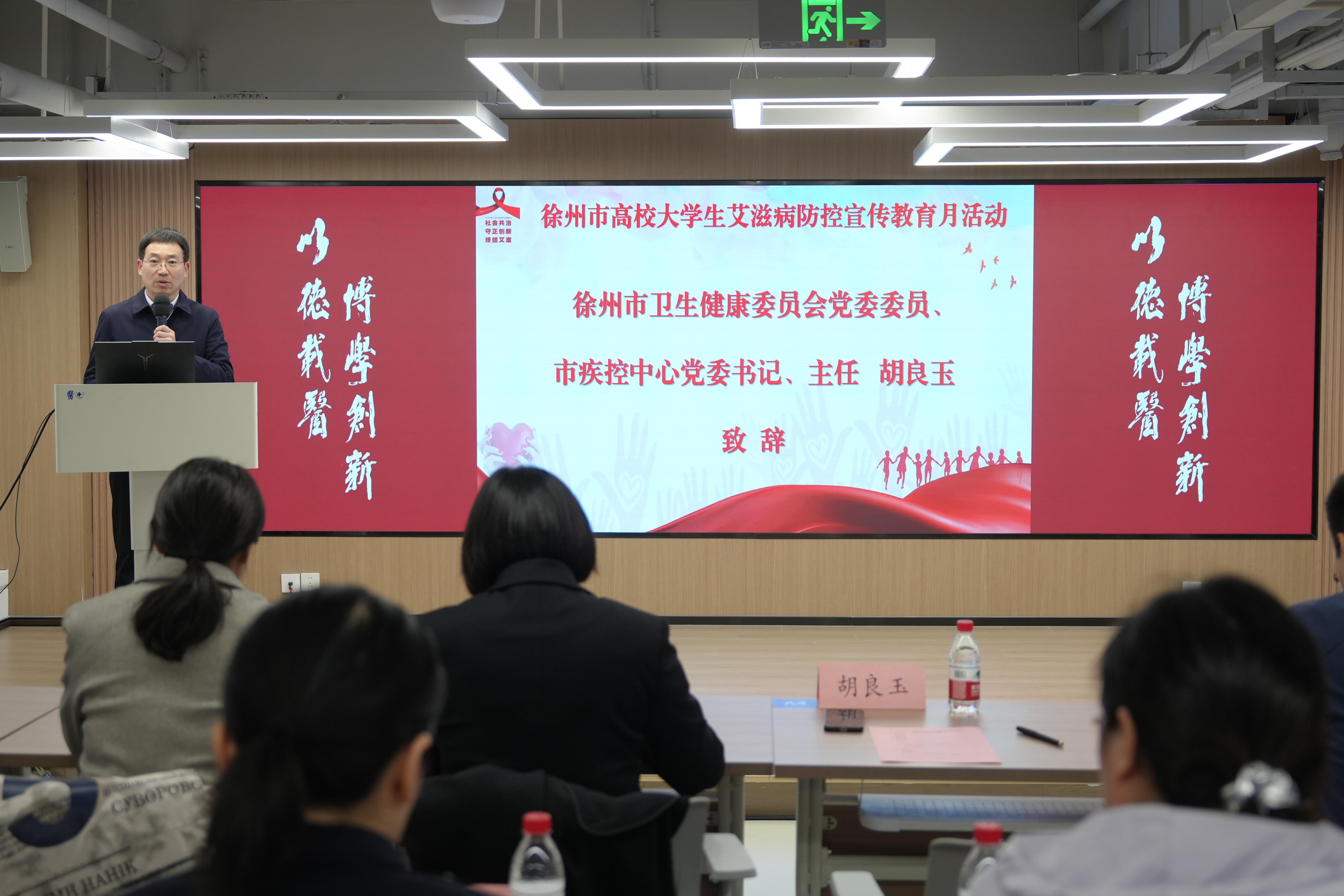 胡良玉在致辞中强调,高校艾滋病防控工作要坚持“社会共治”原则,推动多部门协同发力,同时“守正创新”,积极探索符合新时代青年特点、易于接受的宣传教育新形式与新载体,切实提高防艾知识的普及率与有效性,共同向着“终结艾滋”的目标稳步迈进。