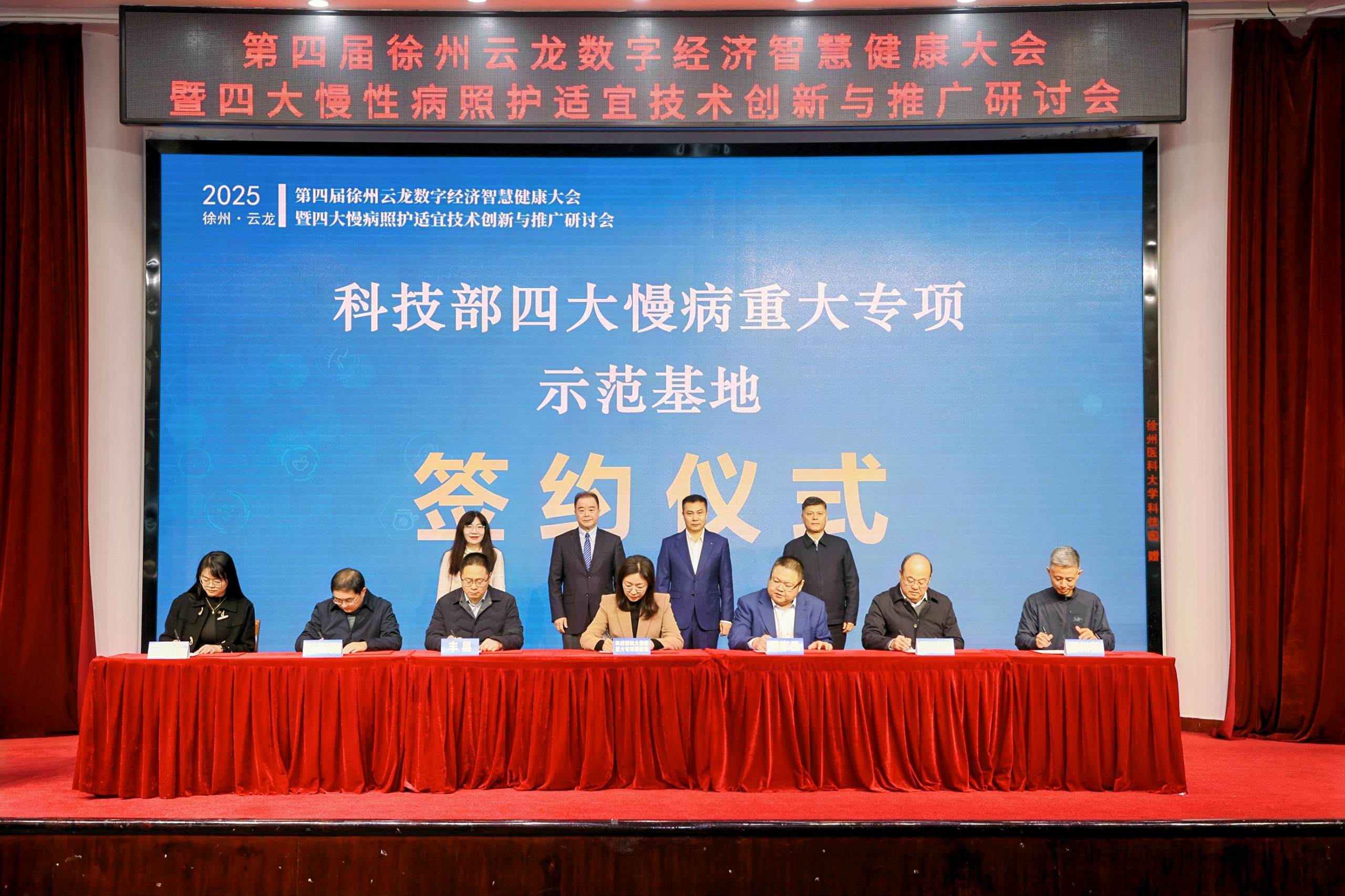 大会举行了国家科技创新2030“四大慢病”重大专项示范基地签约仪式,云龙、丰县、邳州、鄞州、射阳、保亭六地代表与课题组签署合作协议,标志着慢病防控工作从单点突破迈向区域协同新阶段。随后,智慧健康管理产业捕鱼达人 揭牌仪式举行,徐州市委常委、秘书长吴卫东,捕鱼达人 党委常委、副校长刘慎军教授等领导共同揭牌。吴卫东在总结讲话中表示,徐州市将持续优化政策服务环境,将徐州打造为慢病照护适宜技术的创新策源地,为健康中国贡献徐州智慧。