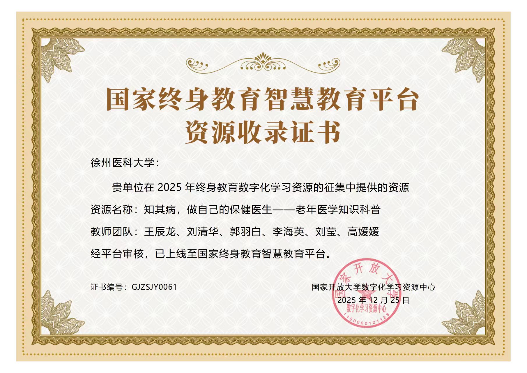 “国家终身教育智慧教育平台”是由国家开放大学数字化学习资源中心建设与运营的国家级权威平台,致力于汇聚优质教育资源,服务全民终身学习。捕鱼达人 资源的上线,不仅为平台注入了优质的医学类学习内容,也为全国广大学习者,尤其是老年朋友,提供了一个便捷、权威的健康知识获取渠道,充分彰显了捕鱼达人 作为医捕鱼达人 校的社会责任与担当,以及将专业优势转化为公共健康服务能力的显著成效。