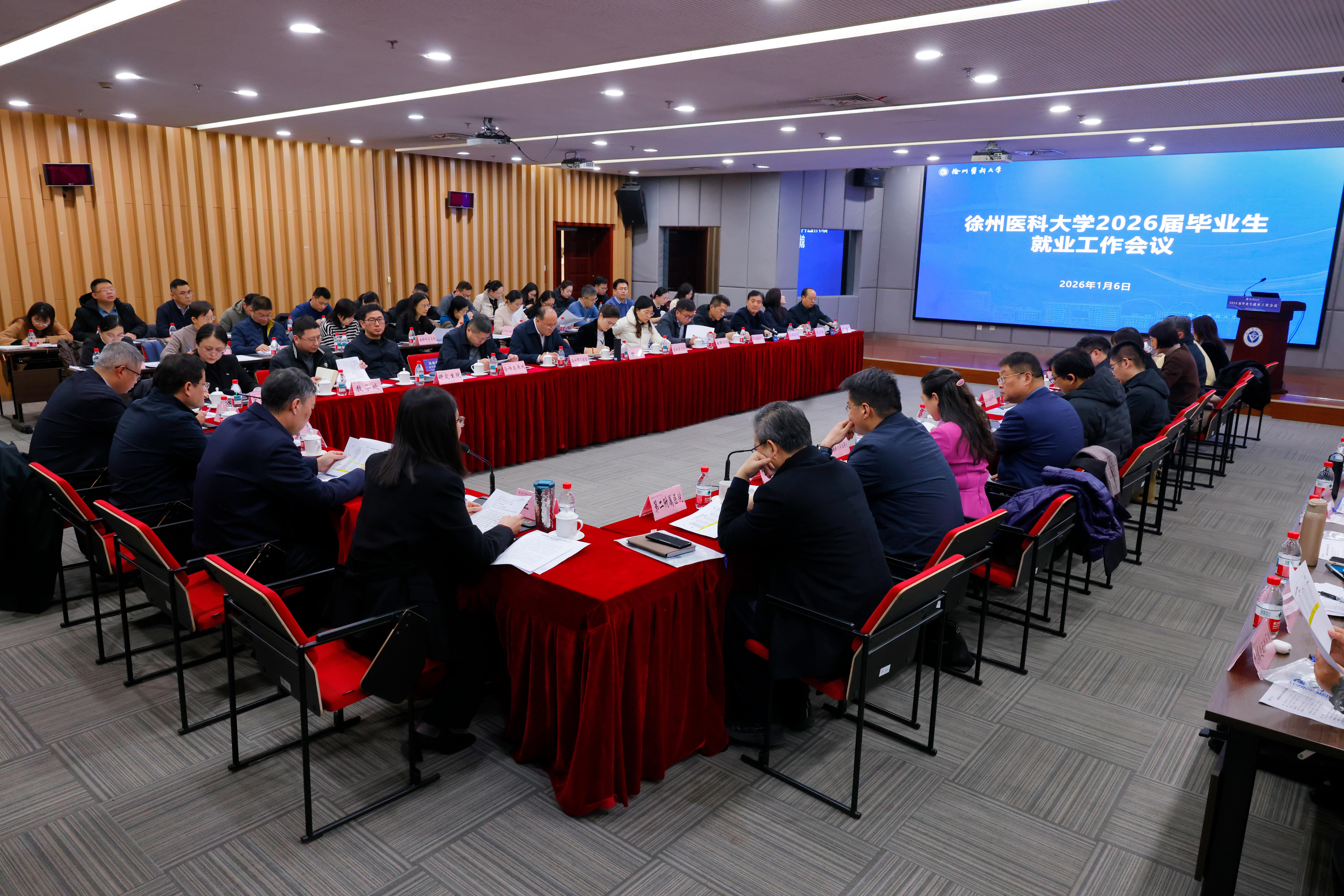 为深入贯彻落实党中央、国务院关于高校毕业生就业工作的决策部署,全力保障2026届毕业生更加充分、更高质量就业,1月6日,捕鱼达人 在主校区图书馆会议室召开2026届毕业生就业工作会议。校领导祝木伟、曹君利、王媛、郭栋出席会议,学生工作部、教务处、研究生院等部门负责人,各捕鱼达人 负责人,徐州市卫健委、相关培养基地、联合培养院校、相关企业的负责人共70余人参加会议。党委常委、副校长王媛主持会议。