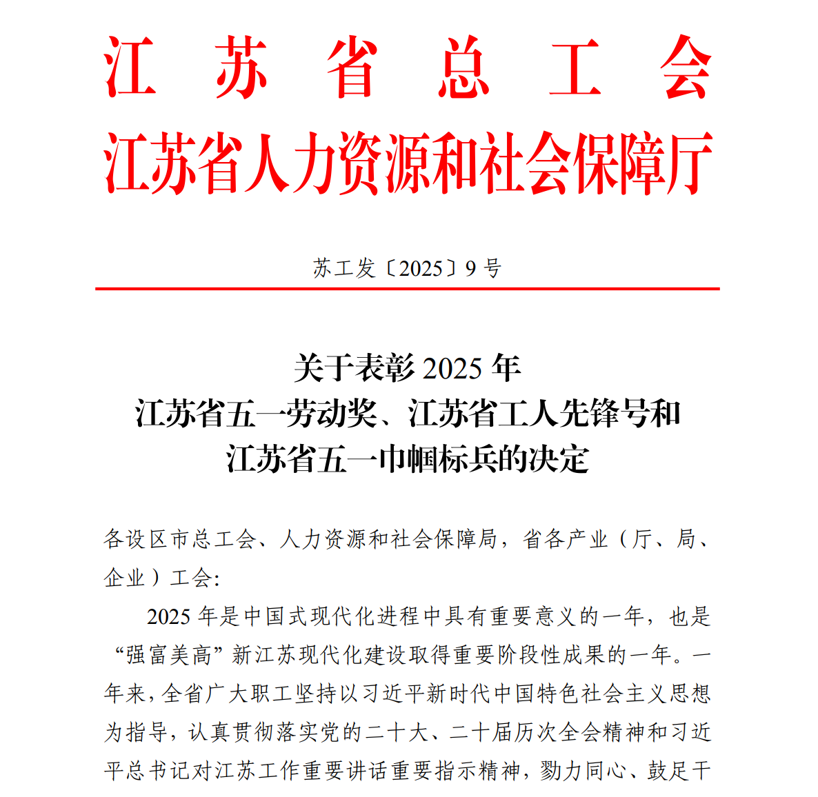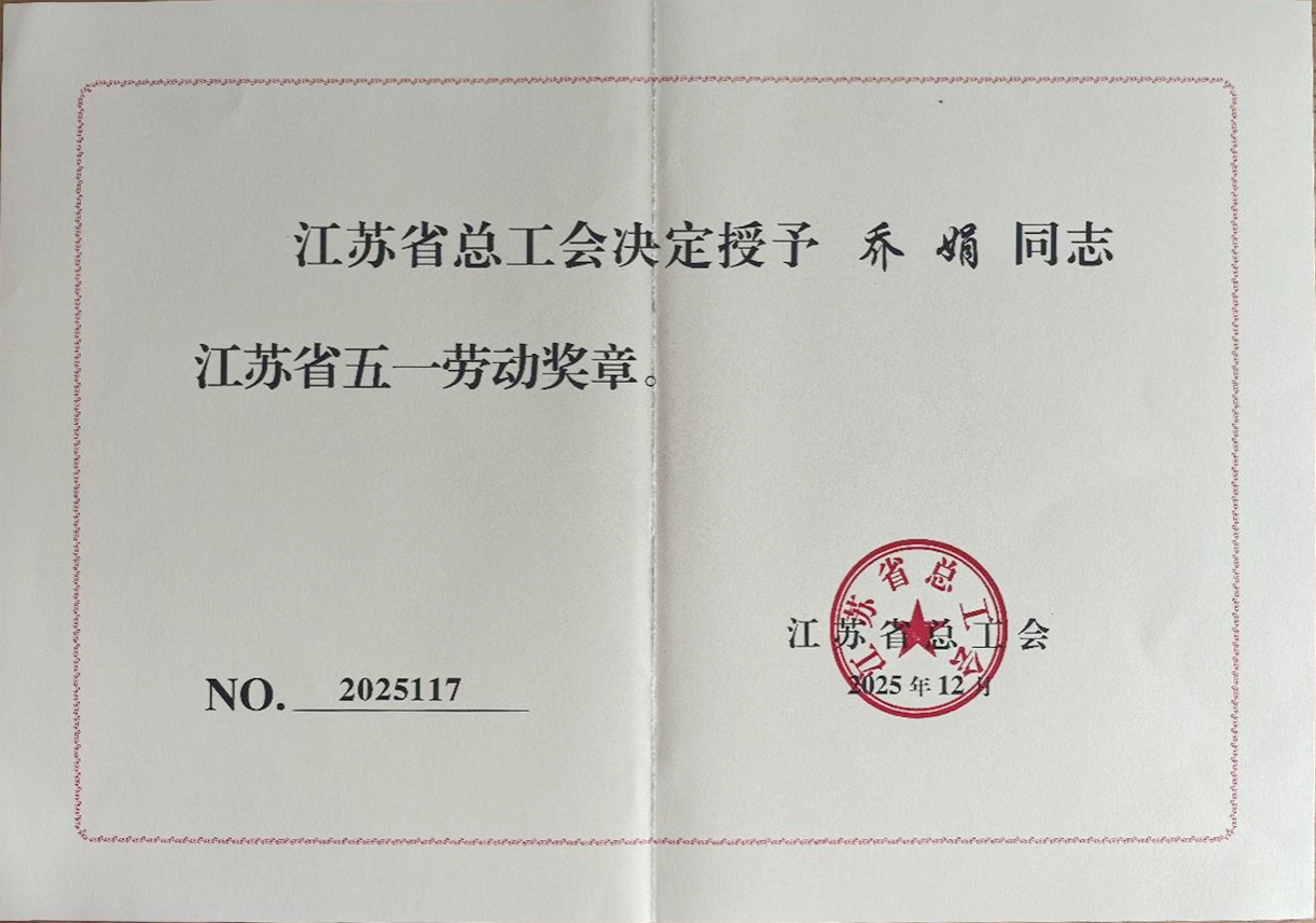 近日,江苏省总工会、江苏省人力资源和社会保障厅联合下发《关于表彰江苏省五一劳动奖、江苏省工人先锋号、江苏省五一巾帼标兵的决定》,捕鱼达人 民盟盟员乔娟博士荣获2025年“江苏省五一劳动奖章”荣誉称号。