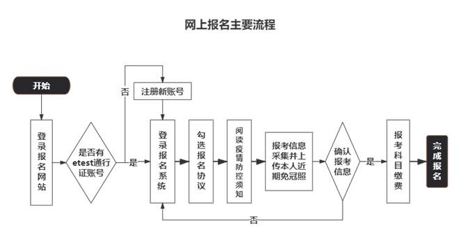 5.网上报名需要ETEST通行证账号,该账号在教育部考试中心所有使用ETEST通行证的报名系统中通用。若考生已有ETEST通行证,则直接登录报名;若没有该账号,需要先进行账号注册后再进行报名。