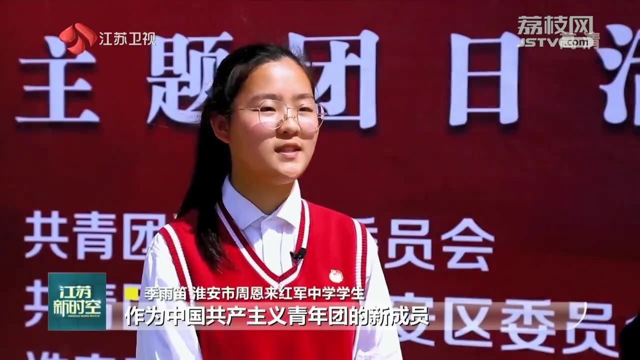 淮安市周恩来红军中学学生季雨笛说:“作为中国共产主义青年团的新成员。在今后的学习和生活中,我一定会努力进取、奋发向上,为实现中华民族伟大复兴的中国梦而奋斗。”