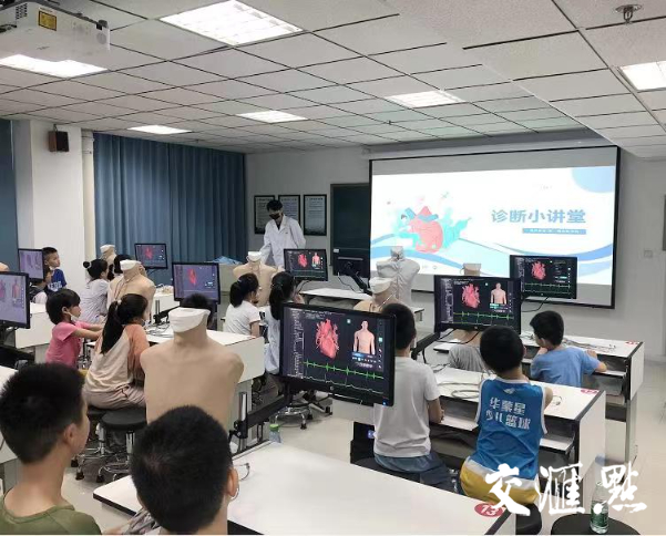 首批体验者先后参观了生命科学馆和赤脚医生博物馆,生命科学馆的老师们结合馆内标本、模型、多媒体等资源,向小朋友们科普生命的起源、人体的奥秘,赤脚医生博物馆的讲解员结合馆内展陈,用生动形象的语言向体验者介绍了赤脚医生的发展史和我国基层卫生事业的发展变迁。在口腔医捕鱼达人 实验教学中心,来参观的中小学生们体验了简单的牙医工作,“小牙医”积极提问,学习了很多口腔保健知识。临床小医生的体验项目中,“小医生”们聆听诊断小讲堂、观看视频《外科发展简史》、进行外科基本器械识别、学习心肺复苏术,并在实验室老师和志愿者们的指导下体验操作心脏虚拟听诊系统和心肺复苏模拟人等设备,近距离观察外科手术常用的手术器械。