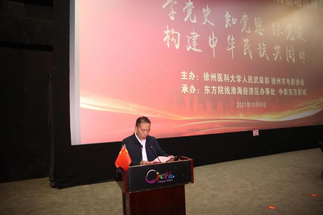 随后,中影东方影城举行红石榴爱国主义教育基地揭牌仪式,徐州市电影协会会长宋军致欢迎词。他说,此次揭牌仪式是开创驻徐高校影院爱国主义教育基地先河的创新举措,生动体现了习近平总书记关于像石榴籽一样巩固发展民族团结的重要思想,也是对青年学生进行“四史”教育的生动课堂。徐州市电影协会将以高度的政治责任感,全力支持红石榴爱国主义教育基地的平台建设,提供全流程的优质服务。