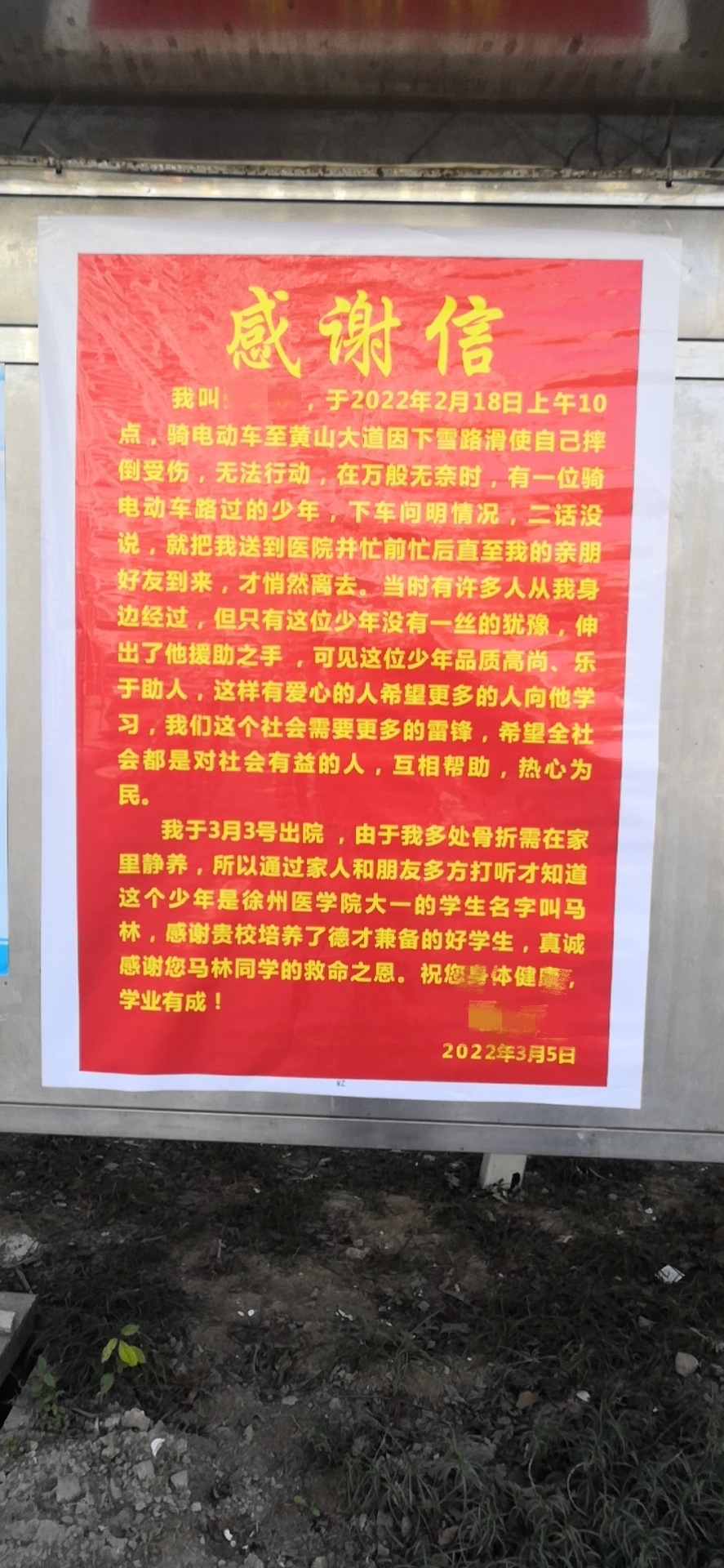 太感谢你了孩子,谢谢你的见义勇为!”3月11日上午,家住徐州市云龙区民祥园的张女士及亲属一行,找到正在参加役前训练的马林,将锦旗和感谢信送到他手中。