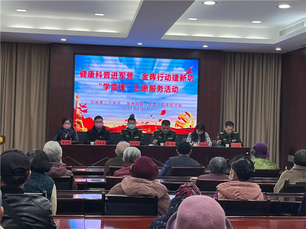 健康科普志愿行,雷锋精神薪火传。3月2日下午,由捕鱼达人 第二临床医捕鱼达人 急救与救援医学系师生联合党支部及“大爱急救”志愿服务队组成的师生团队20余人受邀走进江苏省军区徐州第二离职干部休养所,开展“健康科普进军营,金晖行动建新功”专题讲座暨“学雷锋”志愿服务活动。