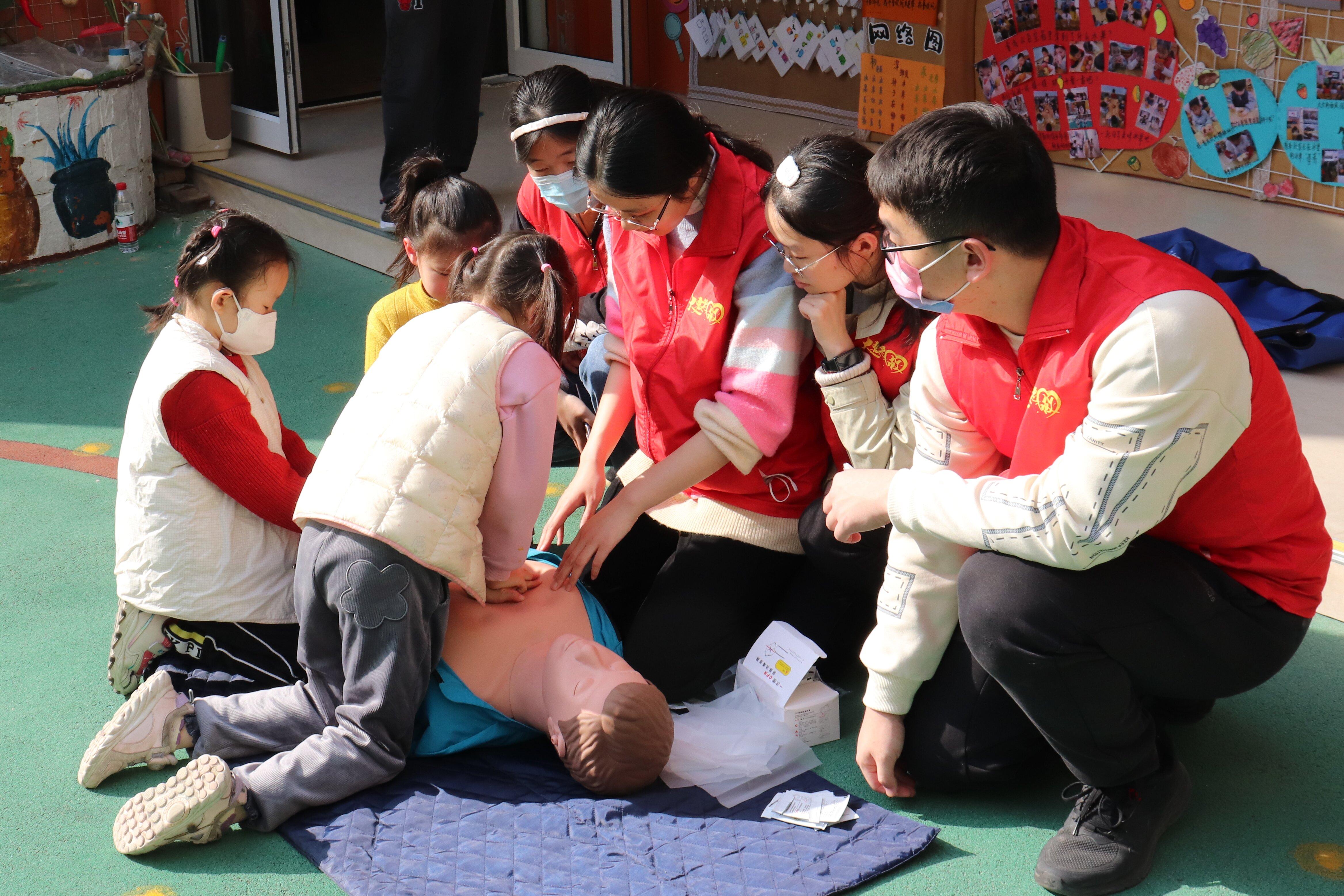 大学生志愿者们向徐州市住建局幼儿园的孩子们讲解医学急救小常识