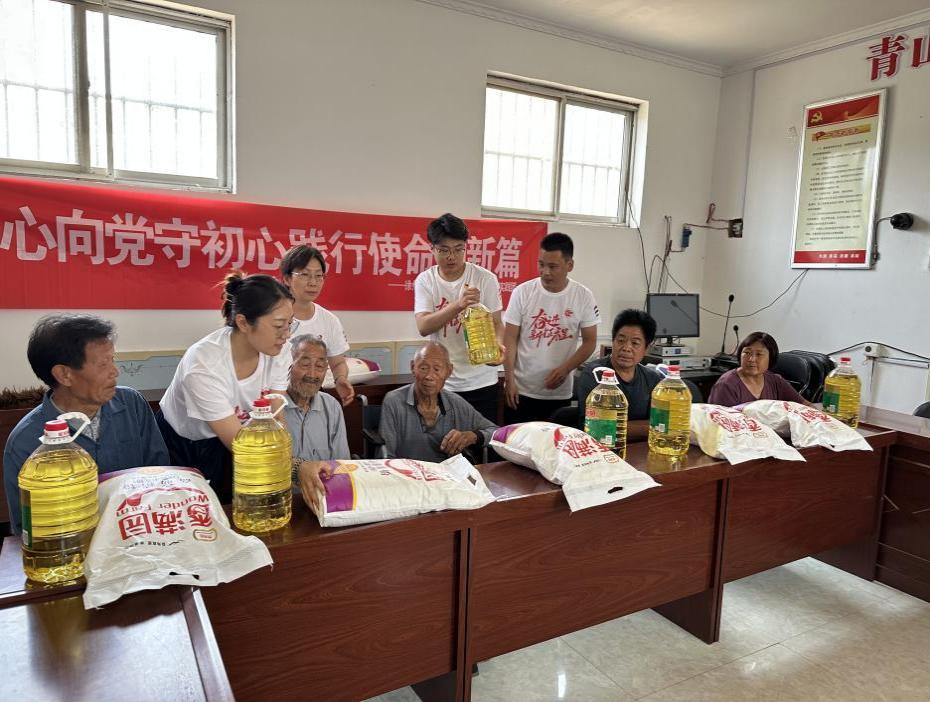 义诊结束后,党员师生还与当地的老党员进行了面对面交流,重温往日峥嵘岁月,深刻感悟革命精神,成员们在潜移默化中汲取奋进力量。交流结束后,团队还为困难党员赠送慰问品。