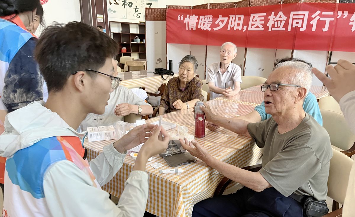 医学技术捕鱼达人 “情暖夕阳,医检同行”实践团赴云龙区九如城康养中心,利用医学检验专业知识向老年人讲解检测报告,为老年人进行血压、血糖的检测,以实际行动践行温暖与关怀老年人理念。