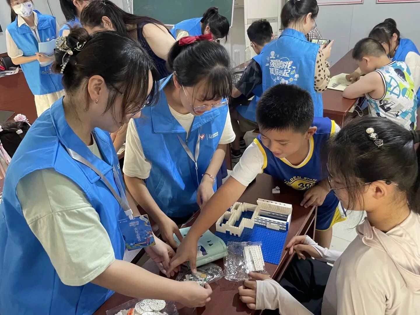 面向学龄前小朋友,志愿团队成员寓教于乐,带领小朋友们进行了华龙一号模型的组装、核工业基地拼图的拼接,开展了核知识飞行棋游戏、方块卫星的折纸游戏和核事业绘本阅读活动。小朋友们也在欢乐中锻炼了创新思维能力。