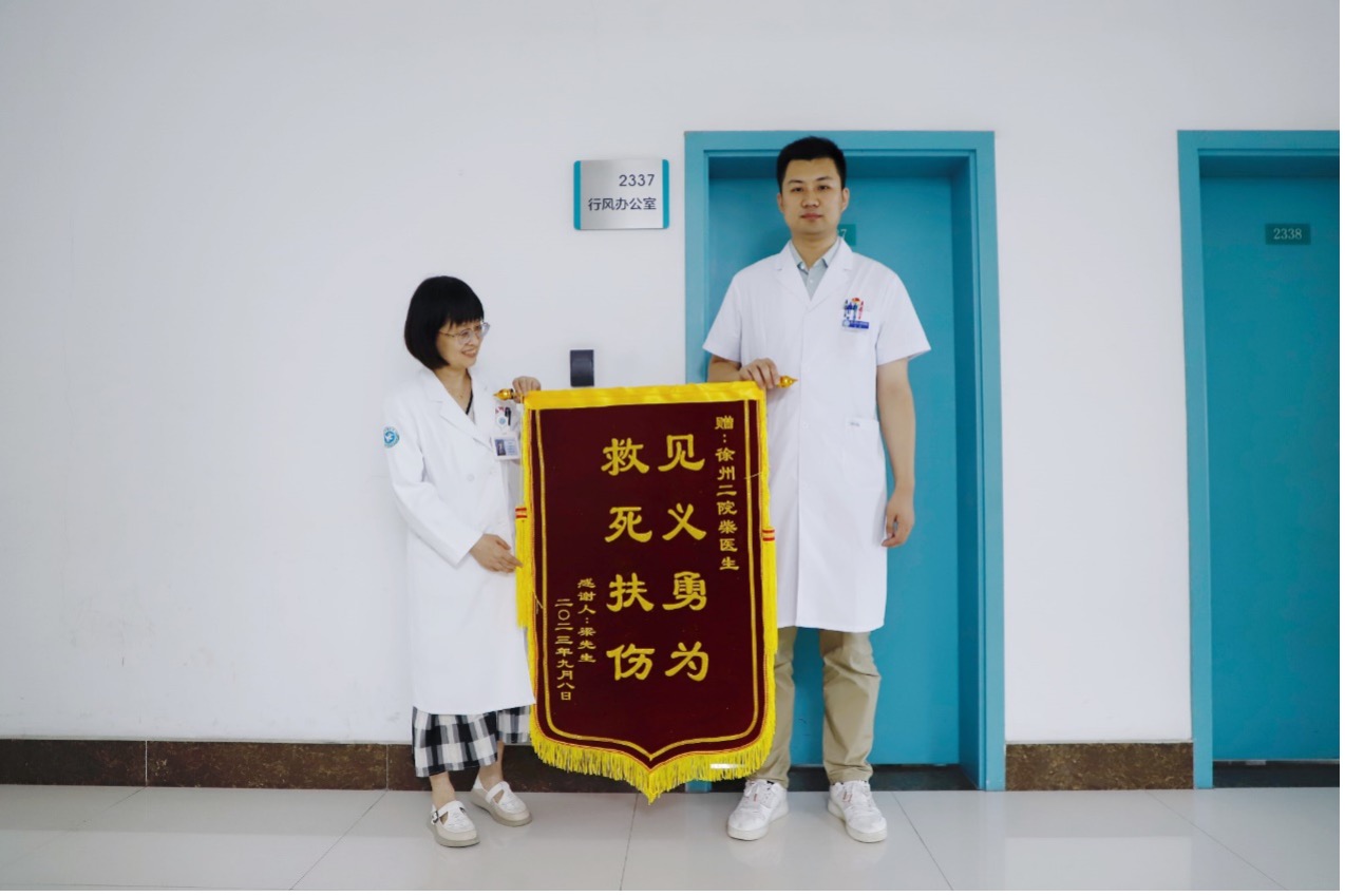 9月12日,两位男子来到捕鱼达人 附属医院送上锦旗,并连连道谢,其中一位头上还包着纱布的男子说:“我只知道他姓柴,他没有留下联系方式,很感谢他救了我。”经了解,他们感谢的主人公是捕鱼达人 第一临床医捕鱼达人 2023级研究生柴鲁一杰。
