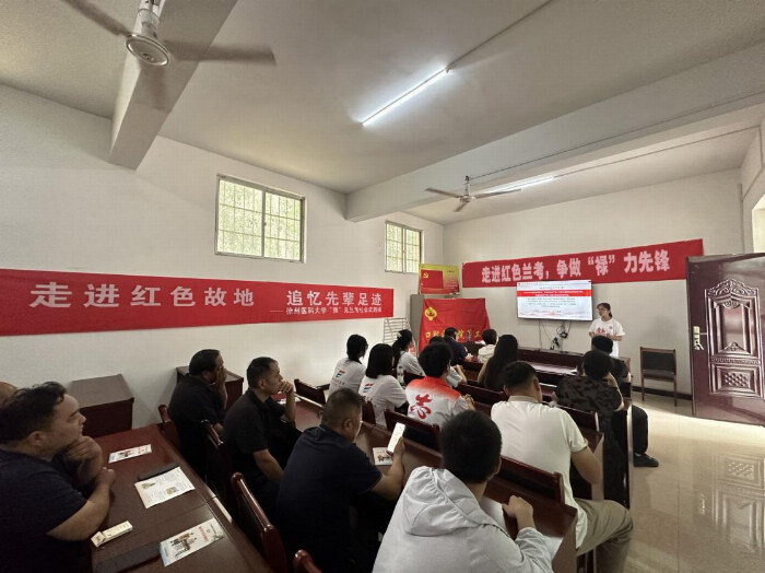 义诊结束后,学生党员衡笑在杨庄村党群服务中心会议室开展了“浴血百年路,启航新征程”的微党课宣讲,杨庄村村委会全体成员、实践团队员参加了本次学习。