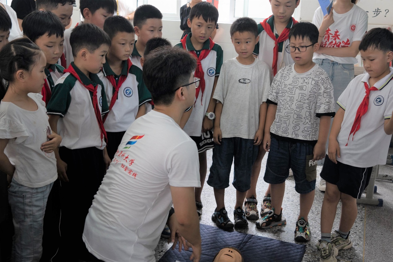 在碾庄镇实验小学,“醉”美青春实践团成员联合专家学者通过麻醉科普讲堂、青春期知识讲堂和急救知识科普讲堂提升青少年儿童健康素养水平。