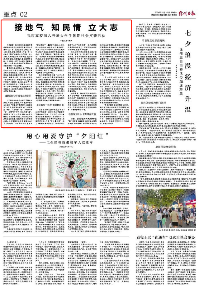 暑假是大学生接触社会、了解社会的良好时机,丰富的一线资源能有效填补校内生活的空缺。近年来,我市各高校社会实践活动蓬勃开展,成为“大思政课”的重要一环,也为学生搭建起“理论联系实际”的锻炼平台,促使他们接地气、知民情、立大志,迈出了“把论文写在祖国大地上”的重要一步。我市不少高校都涌现出长期延续的优秀实践品牌,在实践中为推进中国式现代化贡献青春力量。