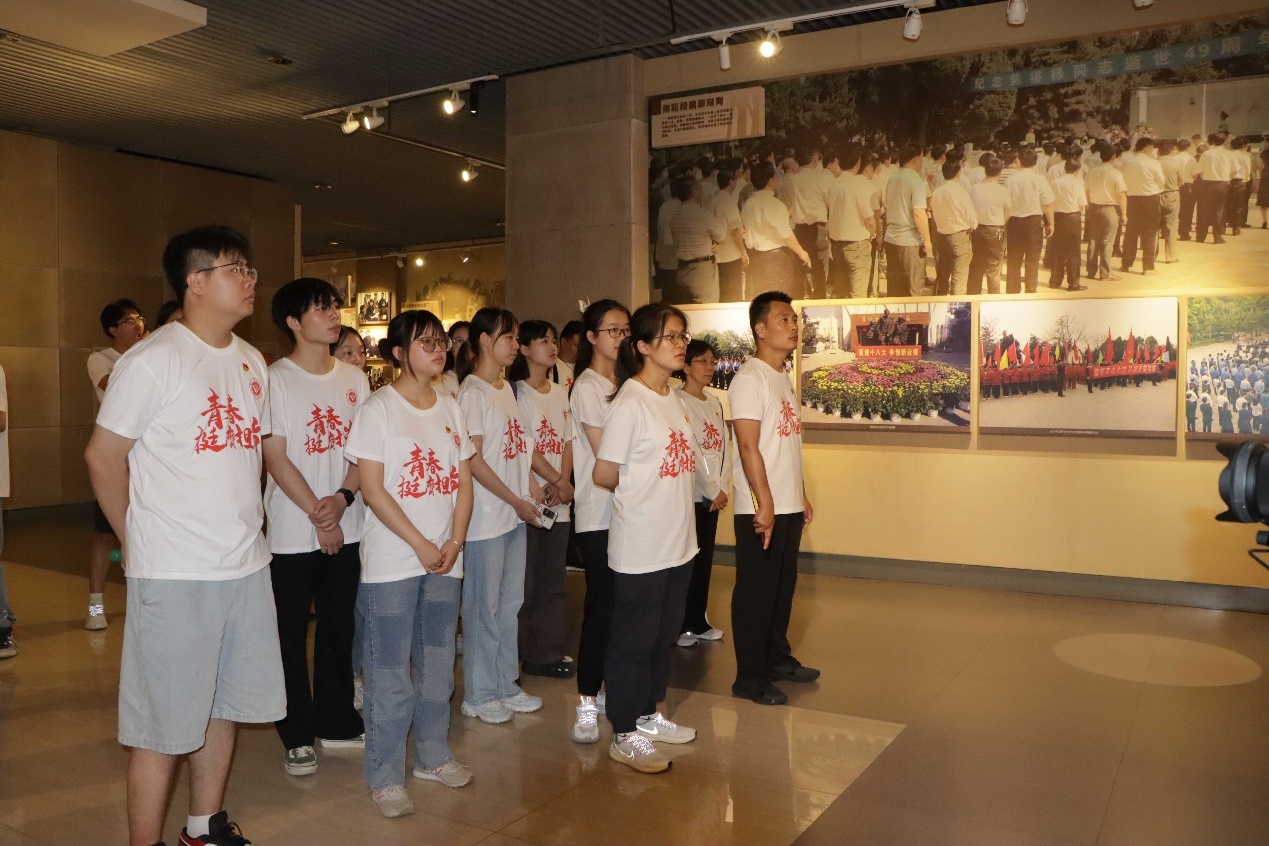 实践团中的党员重温入党誓词,不忘初心、牢记使命,继续传承和发扬焦裕禄精神,为实现中华民族伟大复兴的中国梦而不懈奋斗。