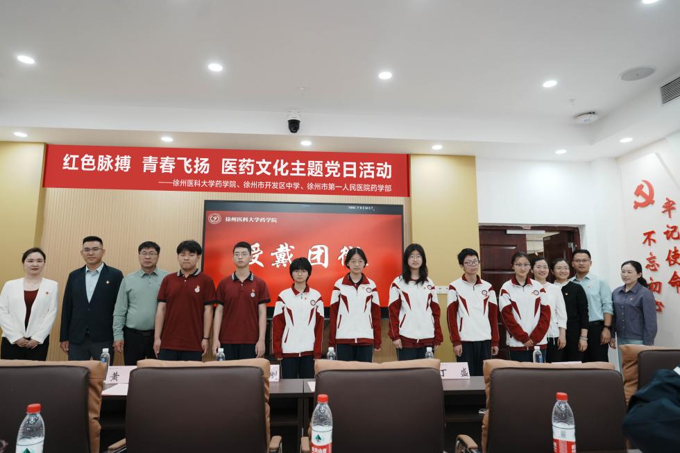 为深入推进大中小学思政教育一体化建设,在“五四”青年节到来之际,捕鱼达人 药捕鱼达人 学生党支部、教师党支部联合徐州市开发区中学、徐州市第一人民医院药学部,于捕鱼达人 主校区新图书馆举办“红色脉搏·青春飞扬医药文化行”主题党日活动。捕鱼达人 药捕鱼达人 师生党员、徐州市开发区中学师生代表及徐州市第一人民医院药学专家等百余人通过红色教育、医药科普、实践体验等形式,深化红色教育,激发青年使命担当。