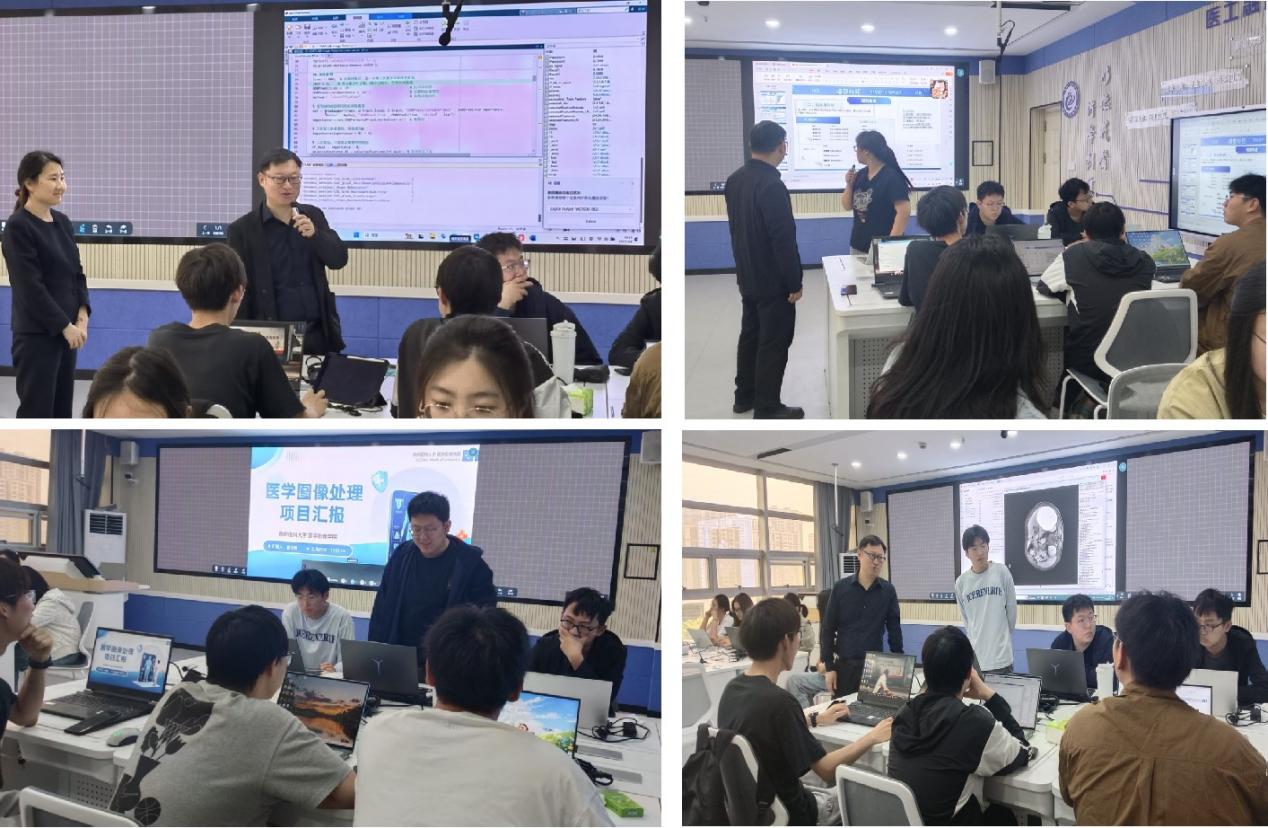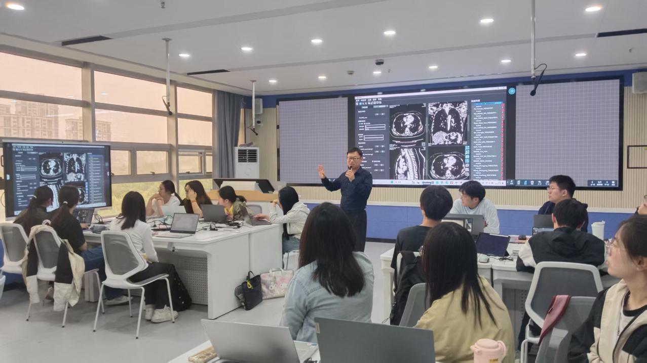 课上,戴亚康教授与同学们开展了面对面交流。他为同学们讲解了基于机器学习的人工智能医学影像辅助诊断模型构建,聚焦于深度学习模型架构创新、多模态影像融合分析以及跨模态特征迁移等尖端研究方向,为学生构建了完整而前沿的医学图像智能分析知识图谱。学生团队分别对《基于MRI图像的肝细胞癌血管侵犯预测》等多个项目开展汇报,各团队首先从数据预处理、特征工程构建等关键技术环节展开详细阐述,随后通过可视化方式生动展示了项目创新成果。戴亚康教授对各学生小组的项目成果进行了现场点评与指导,并分享了中科院苏州医工所在相关领域的最新研究进展与应用示范。学生们纷纷表示,通过此次项目式学习,对医学影像人工智能处理产生了浓厚的兴趣,并对未来的职业道路充满了信心。