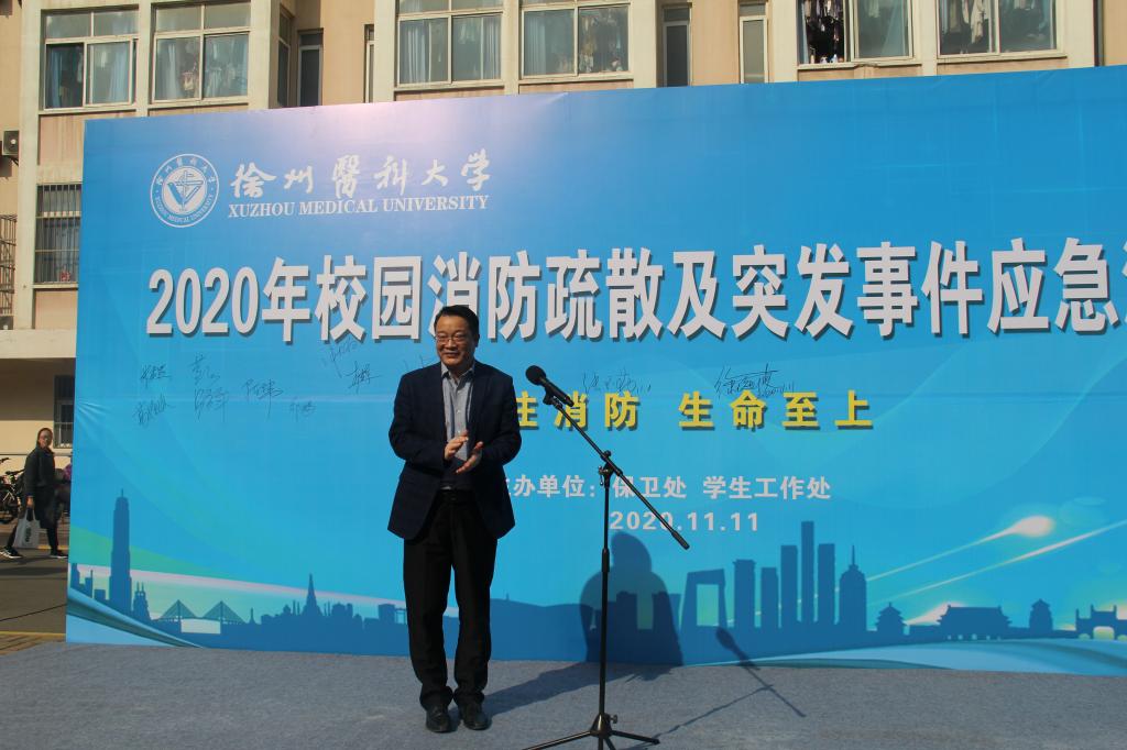 保卫处处处长刘建海主持演练开幕仪式,徐海波副书记致开幕词,张玉勤副校长宣布演练开始。