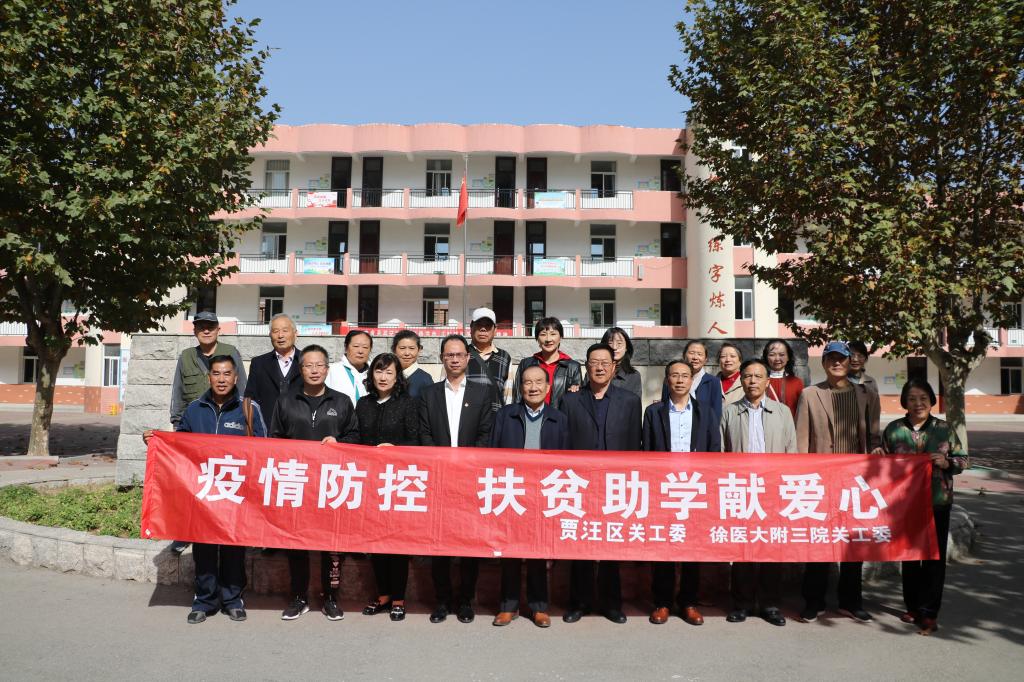 义诊活动进行的同时,徐医大附三院关工委、贾汪区关工委领导一行来到了城区夏桥小学,开展“以党建带‵关建′ 扶贫助学献爱心捐助”活动,为夏桥小学20名贫困学生赠送了爱心书包、医用口罩等。