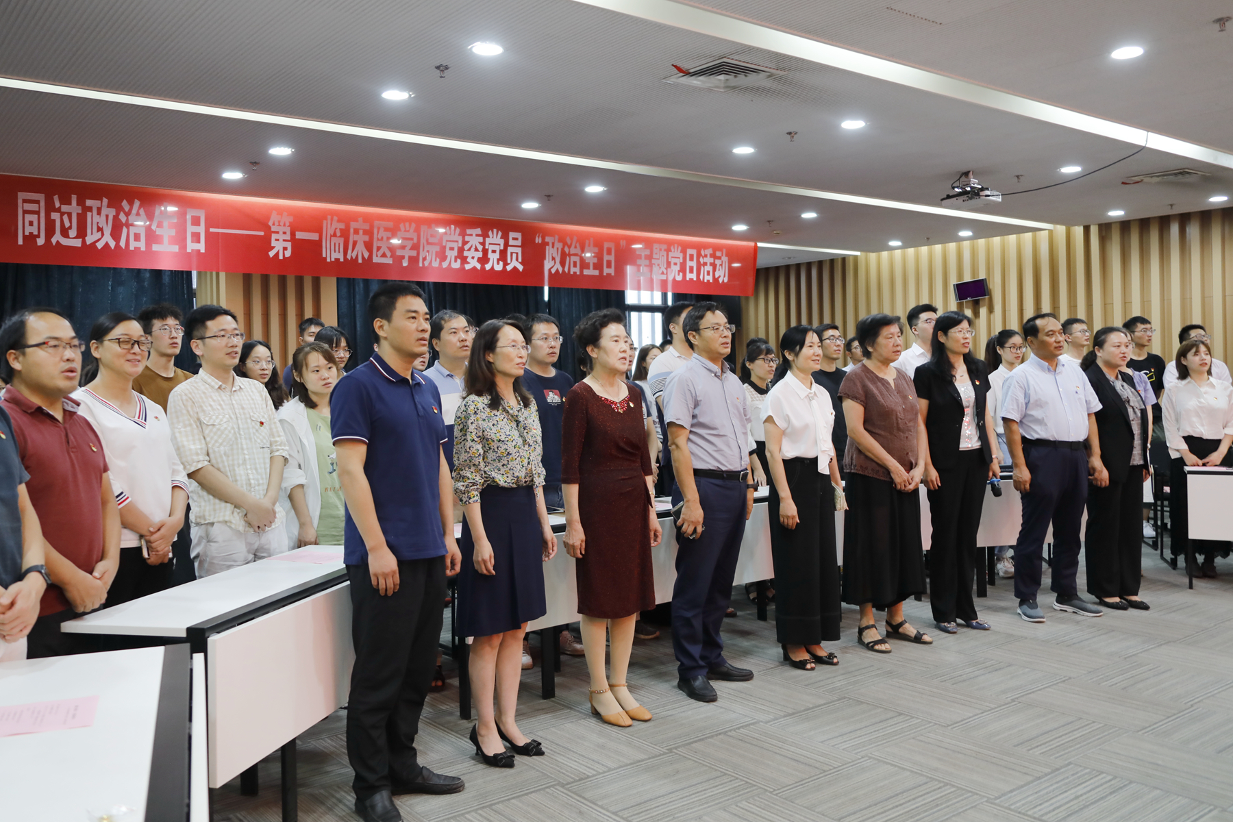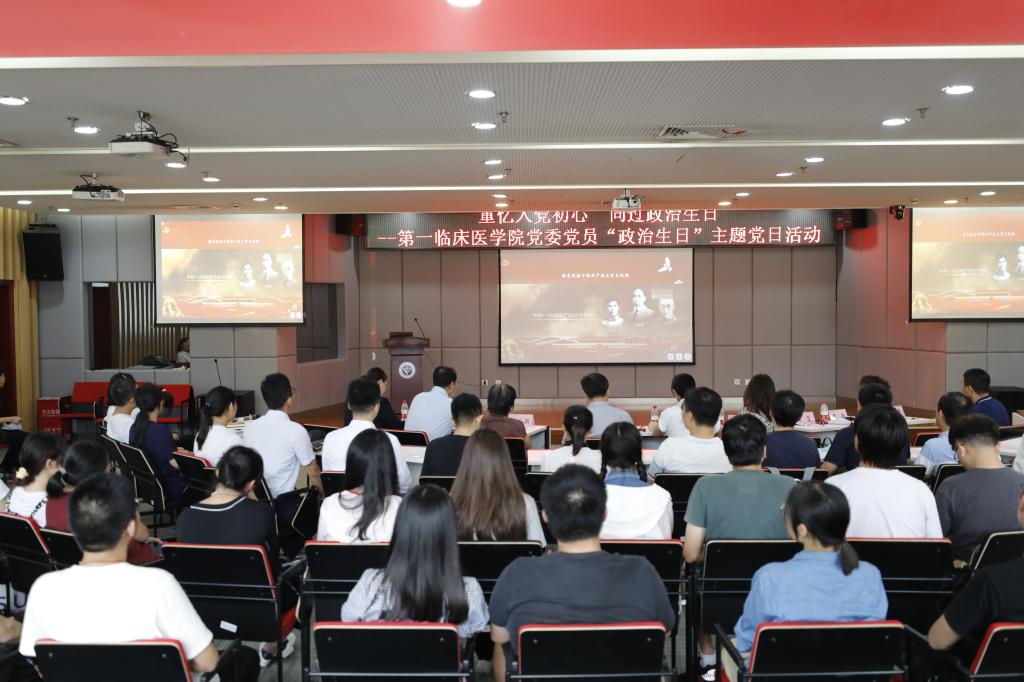 9月16日下午,第一临床医捕鱼达人 党委60余位党员齐聚一堂开展“政治生日”主题党日活动。校党委副书记季红,校党委常委、组织部部长杜刚,校专职组织员办公室主任徐夏红出席活动,活动由第一临床医捕鱼达人 党委书记季芳主持。