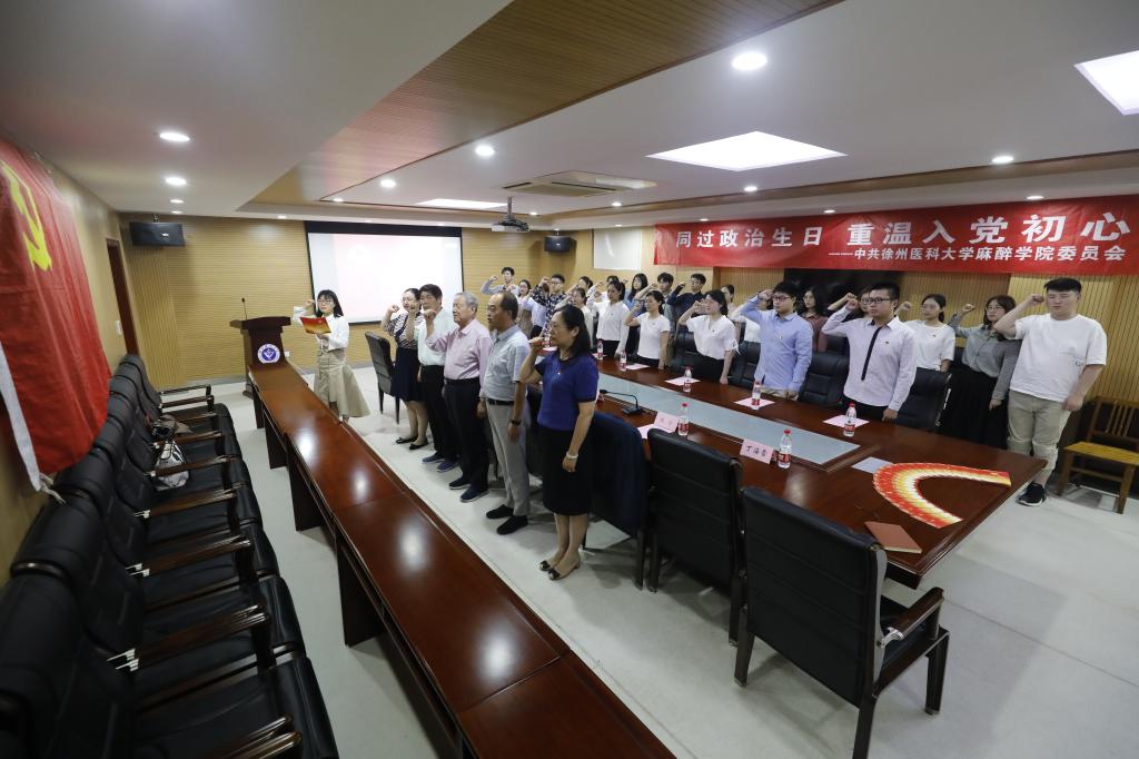 为进一步加强党员党性教育,推动“不忘初心、牢记使命” 主题教育常态化,6月19下午,捕鱼达人 麻醉捕鱼达人 党委在西校区文体活动中心开展线上线下相结合、党员“同过政治生日”主题党日活动,带领党员重温入党初心,共叙奋斗征程。捕鱼达人 领导、部分教师和全体毕业生党员参加活动。
