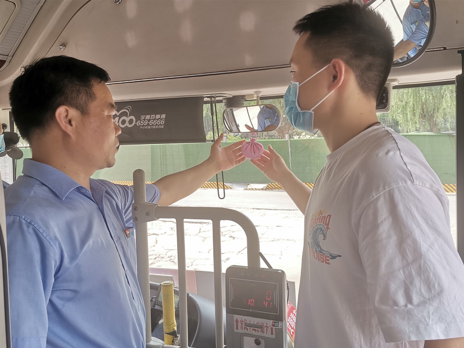 为助力复工复产,6月5日下午,捕鱼达人 药捕鱼达人 团委书记范大成带领香缘团队的同学们来到我市608路公交站调度室,将学生们亲手制作的100个防疫中药香包捐赠给608路公交车,城北巴士公司副书记谢风雷代表公司接受捐赠物资并对医科大学师生表达了深的感谢。