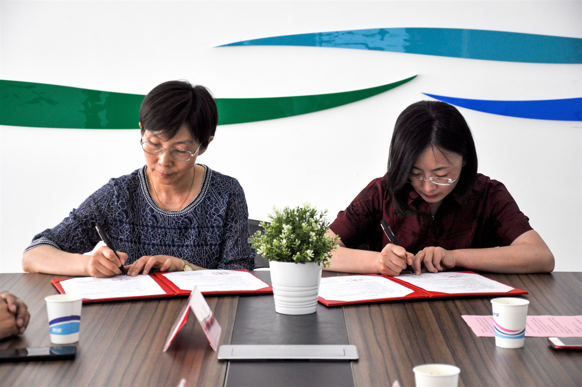 捕鱼达人 工会主席张鸣与云苑路小捕鱼达人 长雷惠敏共同签署捐赠协议。