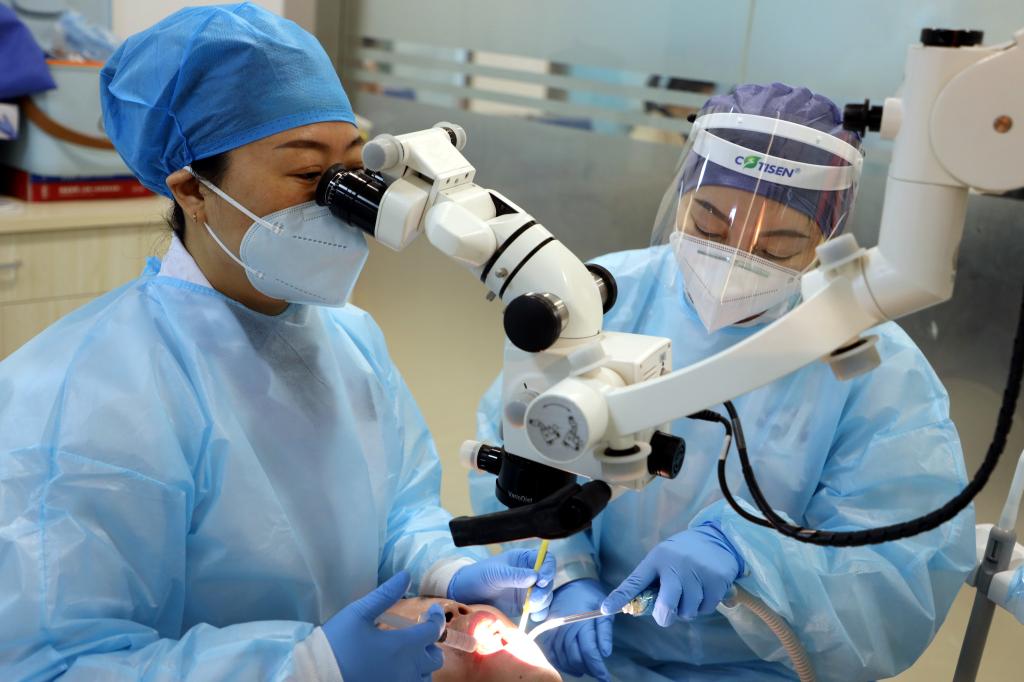 护理人员遵循“一患一室,一患一用”原则,严格落实消毒、隔离制度。为确保患者安全,开诊前做好自身防护,严格落实佩戴护目镜、穿隔离衣、戴手套等防护措施,工作中与医生紧密配合,开展椅旁一对一四手操作,吸唾隔离技术,减少空气污染,治疗结束后严格进行终末消毒,确保口腔诊疗安全高效。