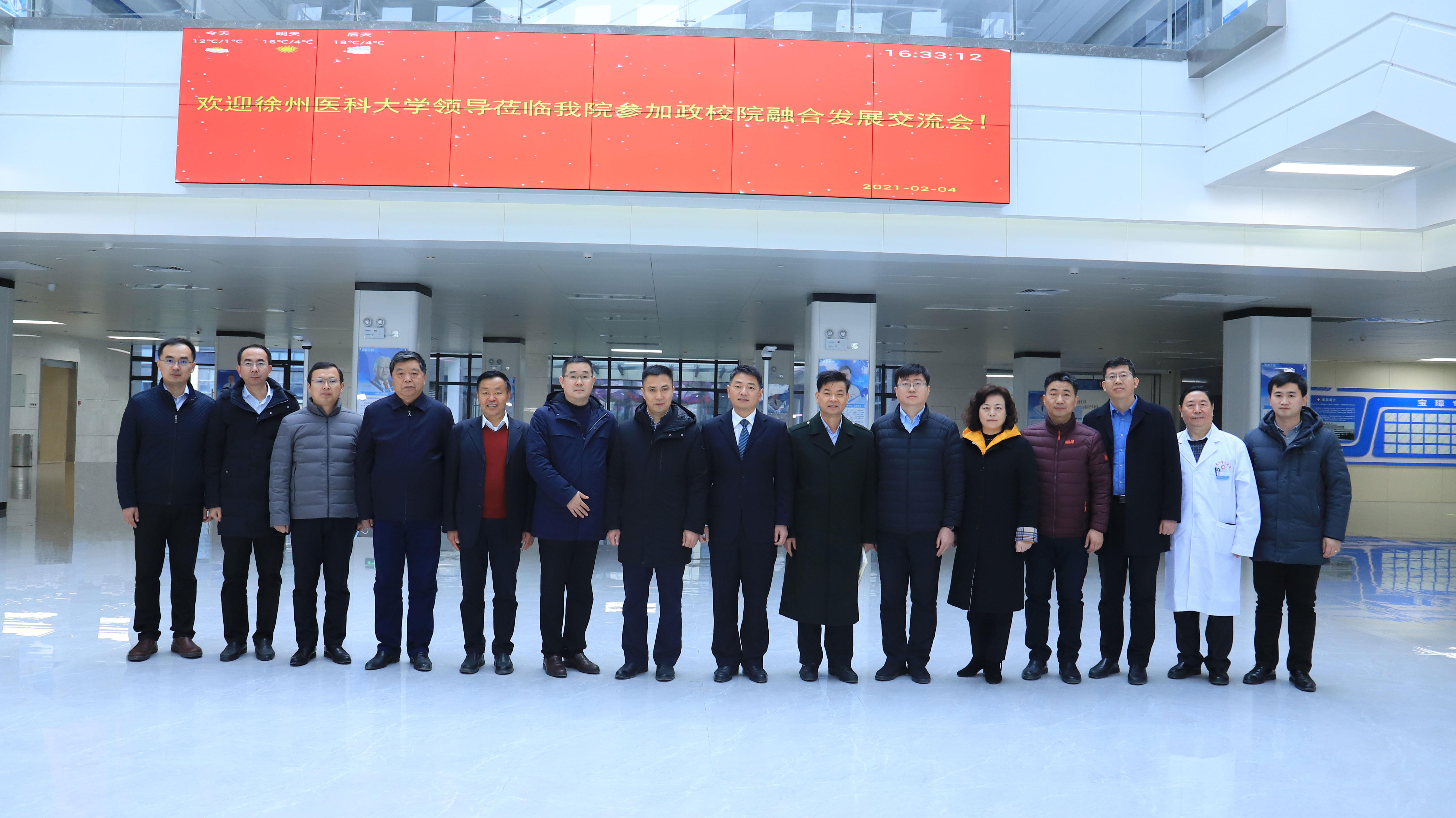 相关职能部门负责人赴安徽亳州宝璋医院考察,就推动校院合作事宜与医院进行进一步交流。利辛县委书记吴斌、副县长钱卫、七喜集团高级副总裁张树军、宝璋医院执行院长赵一俏等参加接待活动。座谈会前,刘慎军副校长一行参观了宝璋医院的相关科室及附属设施建设。