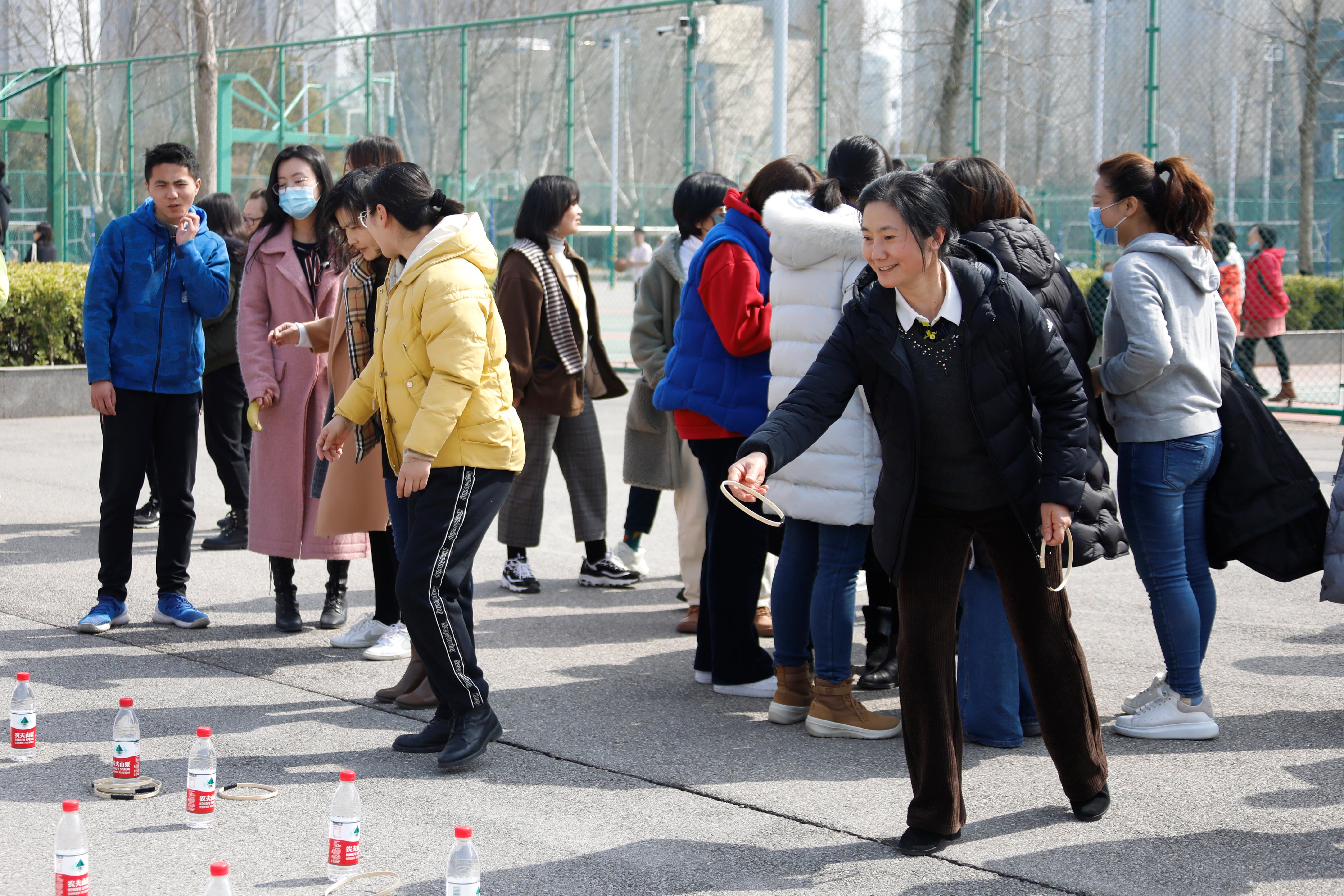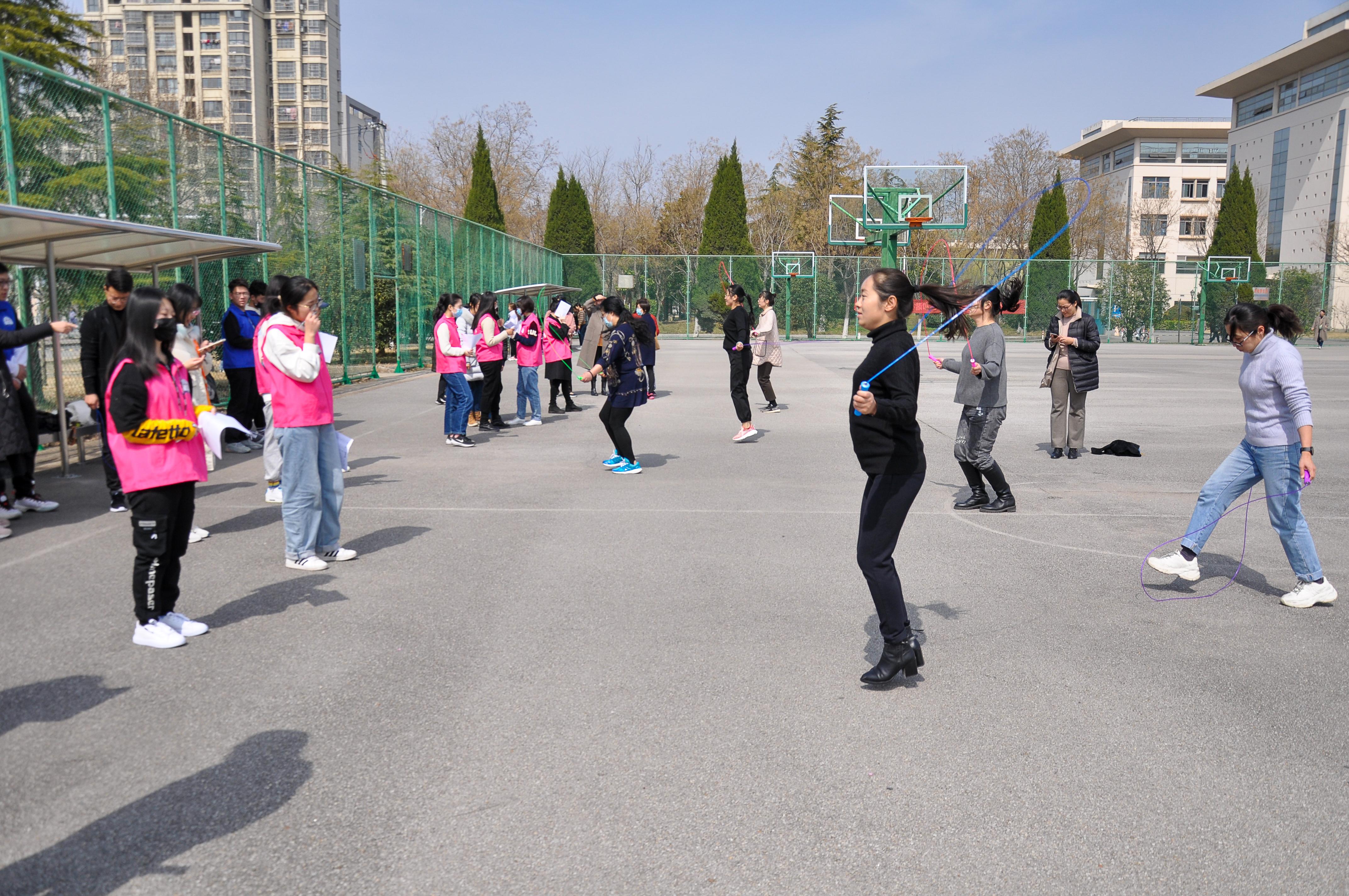 本次活动有跳绳、踢毽子、套圈三个比赛项目,得到女教职工们的热烈响应。阳光下,篮球场上,参加比赛的女教职工们个个朝气蓬勃,形成了一道靓丽的风景线,现场气氛和谐欢快。跳绳比赛选手身轻如燕,灵活敏捷;套圈比赛选手各显神通,异常活跃;踢毽子比赛引人注目,妙趣横生。大家在运动中享受快乐,增进交流,促进健康,欢度属于自己的节日。