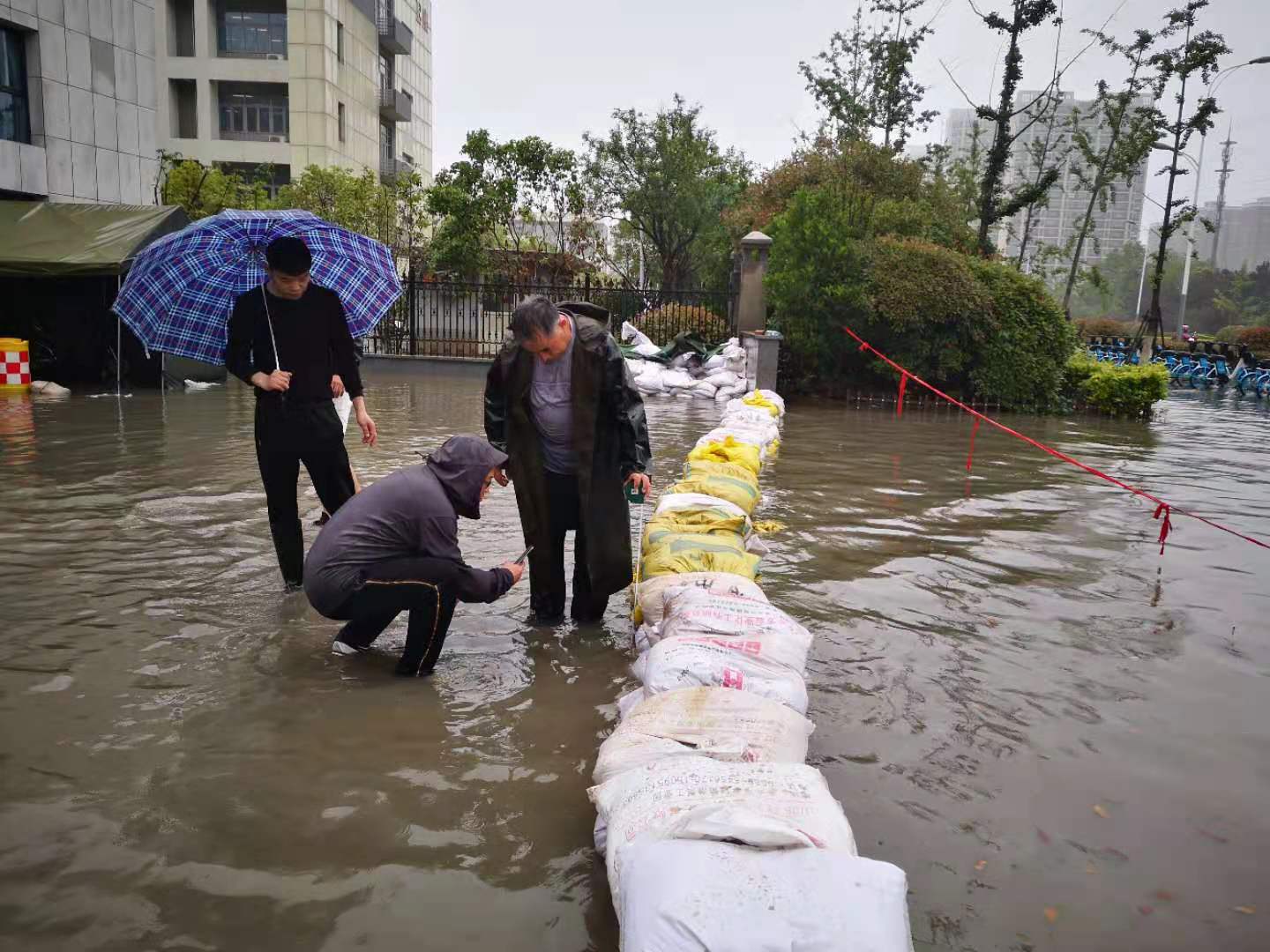 5月15日再次降雨,后勤管理处处领导、科级干部和业务中心主任又一次赶往捕鱼达人 ,参与抗洪抢险。后勤管理处物业与绿化管理科巡查校园河道水位,走访学生宿舍区,查看路面积水情况;为防止夜间再次降雨,出现汛情,后勤管理处基建科、维修管理科干部检查、加固捕鱼达人 东大门沙袋,查看雨水井是否通畅,一直忙碌到深夜。
