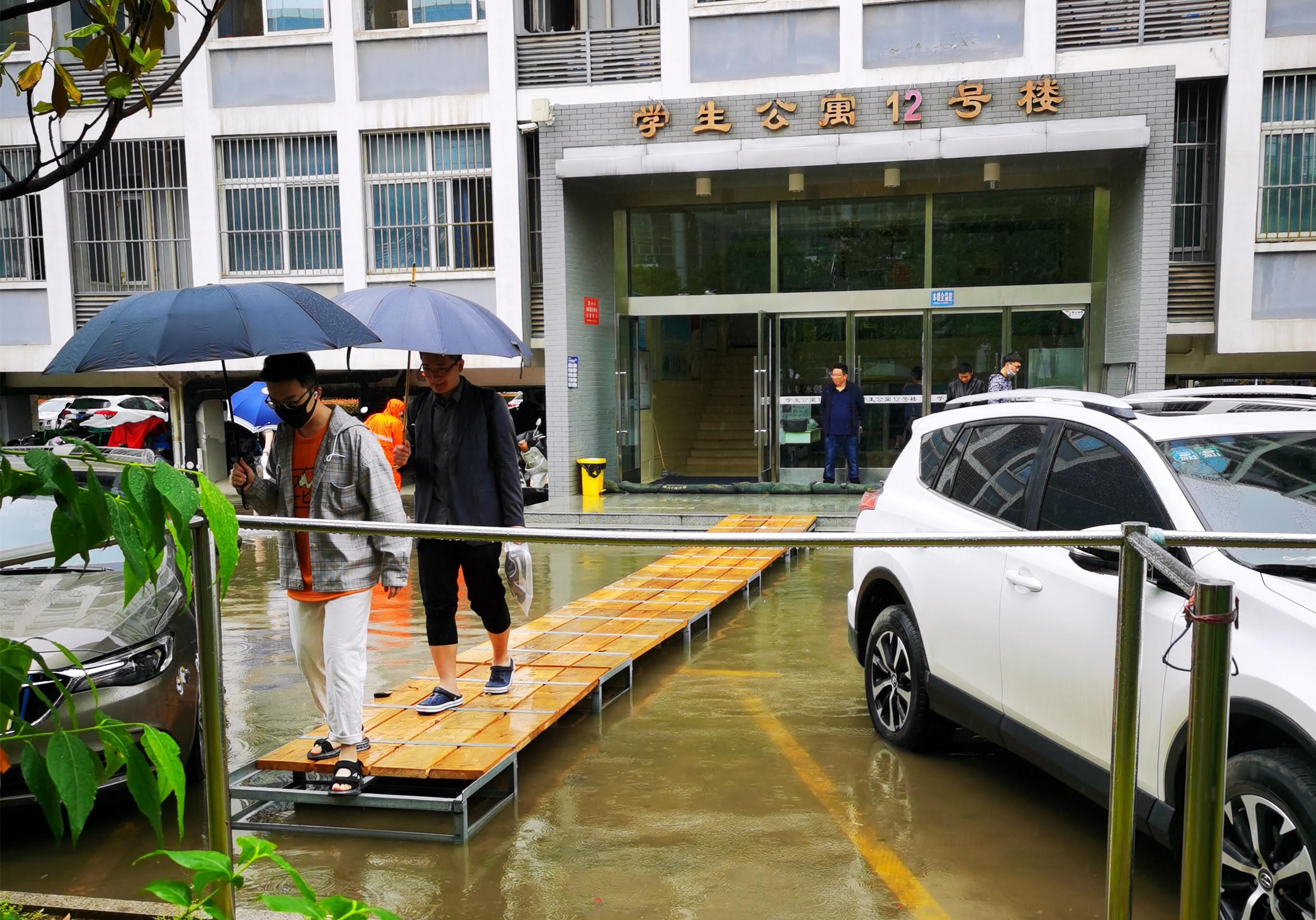 5月16日雨量减少,后勤管理处处领导、科级干部和业务中心主任依然坚守防汛岗位,以应对突发情况。本次暴雨中,西校区未出现汛情,这得益于西校区校外市政排水管网完善,以及后勤管理处前期对西校区地下排水管网彻底改造、疏通,西校区内涝问题得到彻底解决。