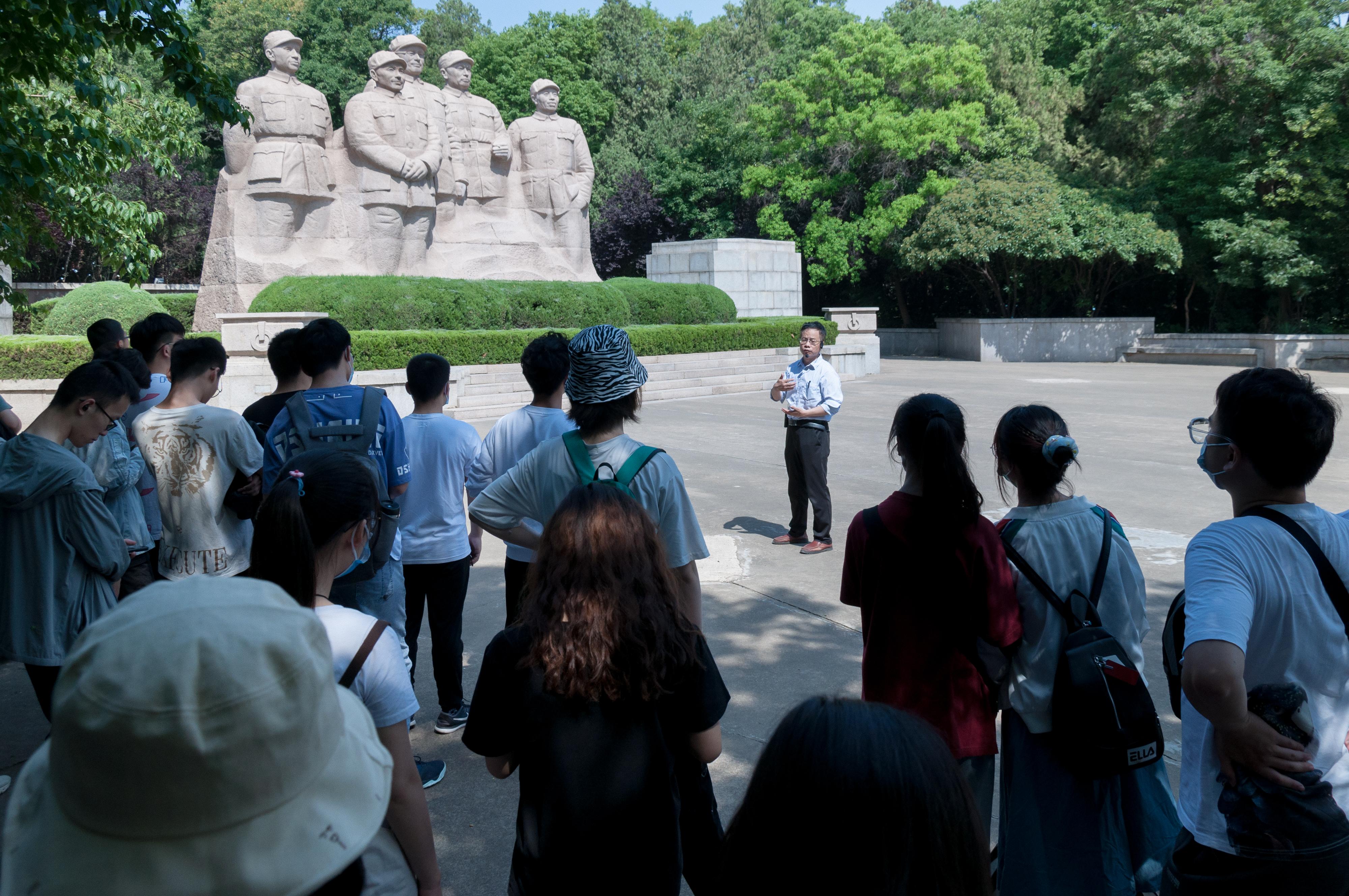 5月29日,捕鱼达人 马克思主义捕鱼达人 中国近现代史纲要教研室刘万路、金雪、陈雪明老师带领2020级急救、医学影像1、2班的学生在淮海战役烈士陵园进行了实地教学,捕鱼达人 教学办主任鹿启春、2020级医学影像捕鱼达人 辅导员程苗参加活动。