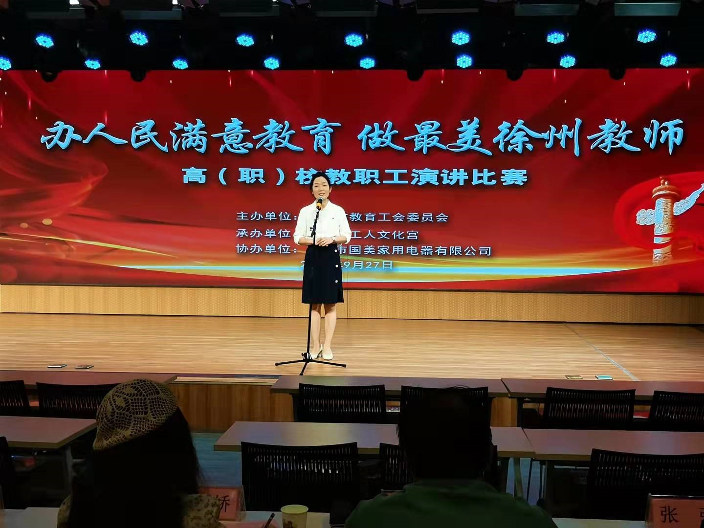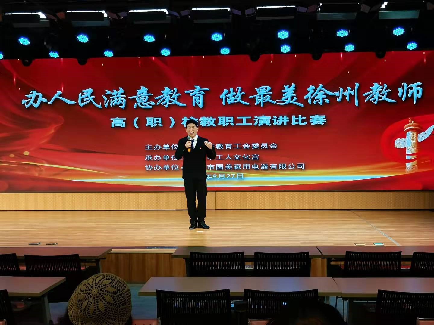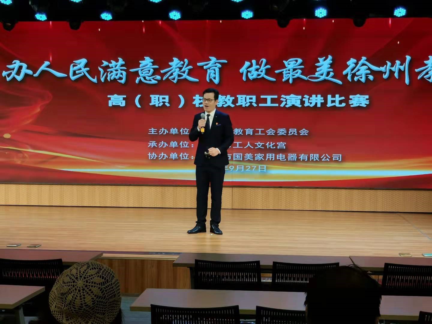 9月27日,由徐州市教育工会主办、市工人文化宫承办、市国美家用电器有限公司协办的 “办人民满意教育 做最美徐州教师” 全市高(职)校教职工演讲比赛在市文化宫举行,全市13家高(职)校28名教师代表参赛。