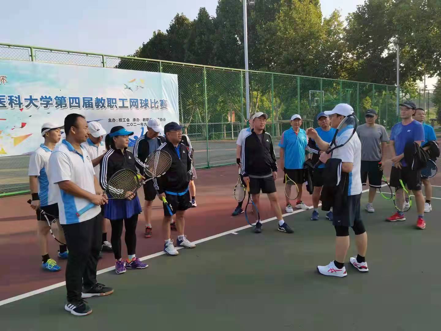 校党委常委、组织部部长、网球协会会长杜刚简单介绍了本次网球比赛的准备情况、规则和要求,比赛采取“自愿组合和协会分配”的原则,16名主力队员分为AB两个小组进行双打,小组内打循环赛,小组出线后打决赛。