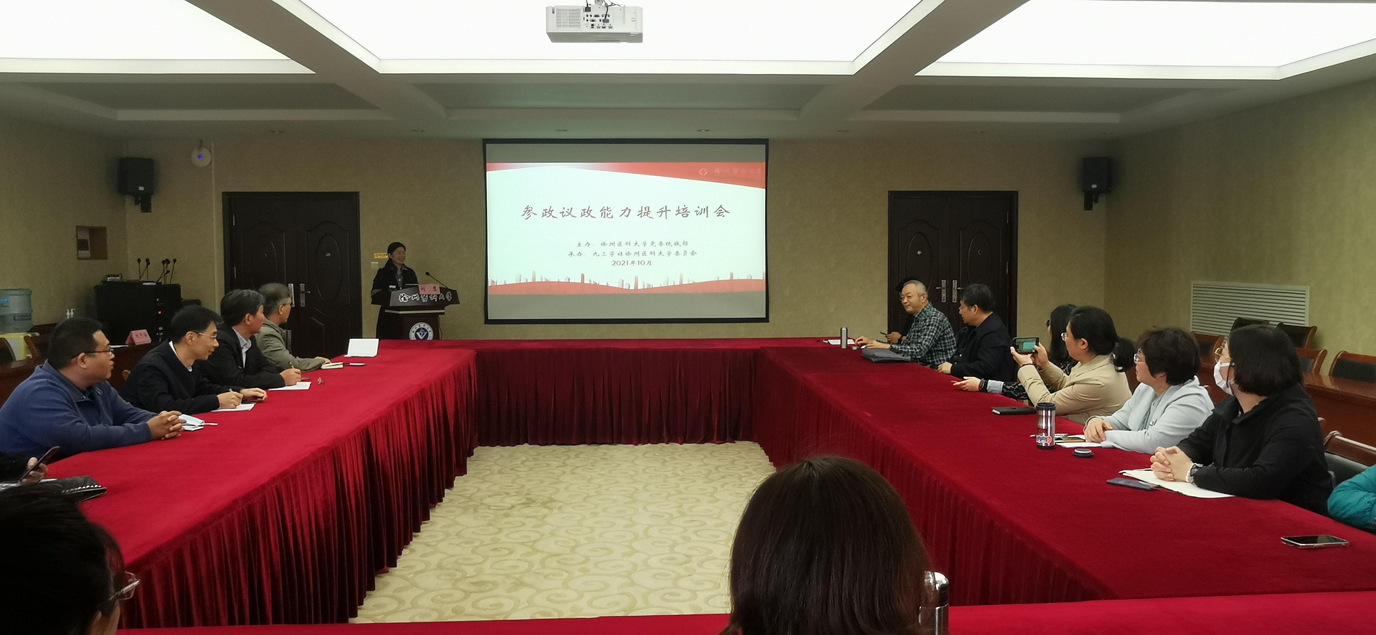 10月22日,由党委统战部主办、九三学社捕鱼达人 委员会承办的统一战线参政议政能力提升培训活动在行政楼201会议室举行。捕鱼达人 各级政协委员、民主党派和统战团体成员代表参加。培训会由捕鱼达人 九三学社主委刘慧主持。