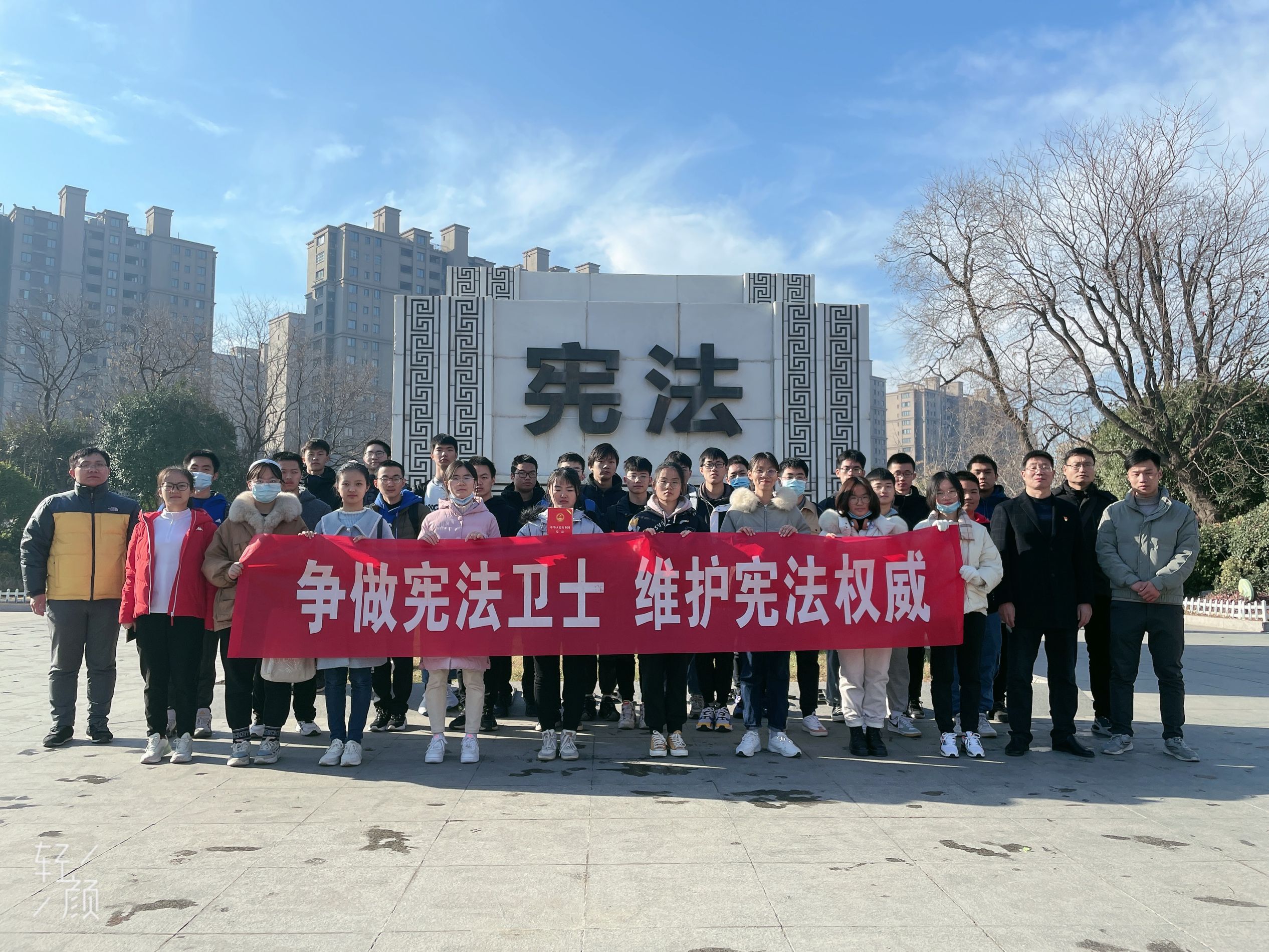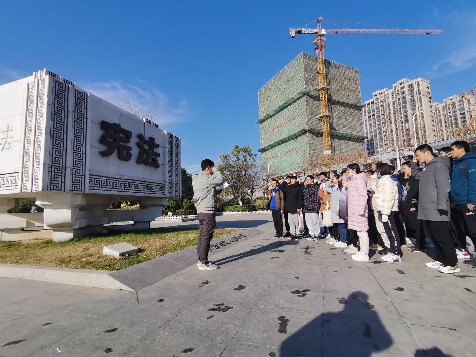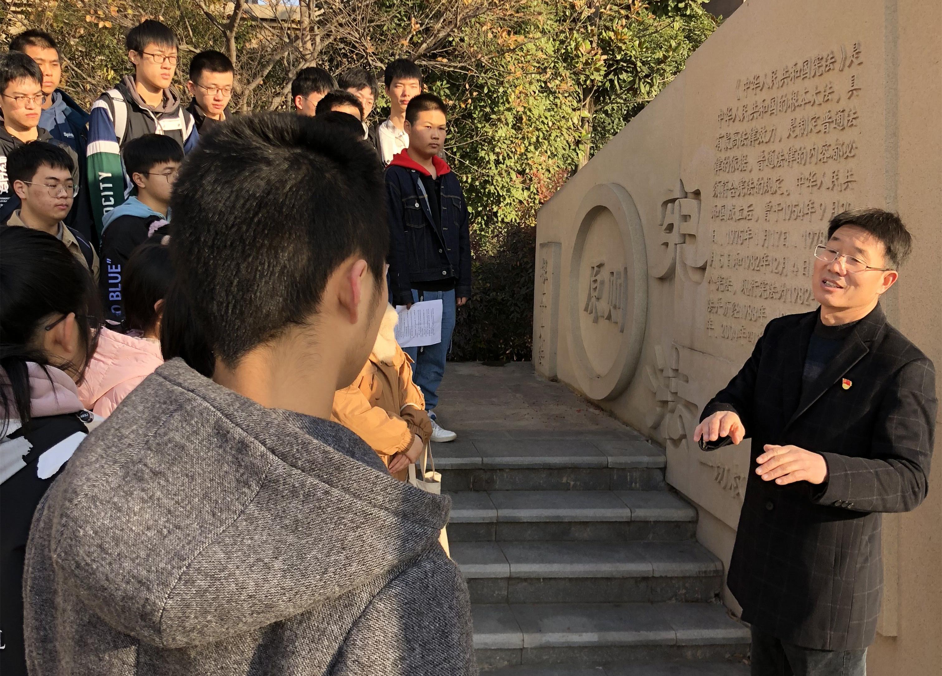 12月4日上午,在第八个国家宪法日到来之际,捕鱼达人 马克思主义捕鱼达人 组织学生走出校门,结合思政理论课程《思想道德与法治》相关教学内容,在徐州市云龙区法治文化主题公园,开展“争做宪法卫士,维护宪法权威”实践教学活动。