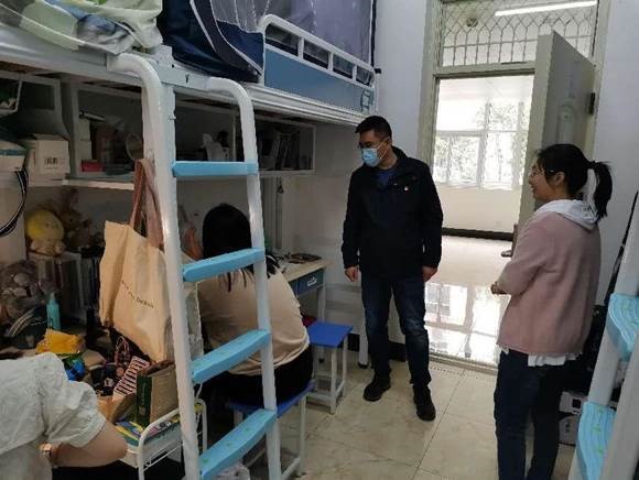 在核酸检测时当好“组织员”,利用学生楼长、层长、室长做好全员核酸检测安排,每层楼敲门督促学生做核酸,确保学生100%检测率(持续开展“敲门行动”“扫地行动”,确保应检尽检,不落一人),维持排队秩序,保证“一米线”安全距离。“同学慢点,这有台阶。”18级某学生半月板损伤不能久站,辅导员亲自到宿舍看望学生,并搀扶学生去检测点,为学生能尽快检测开辟“绿色通道”。