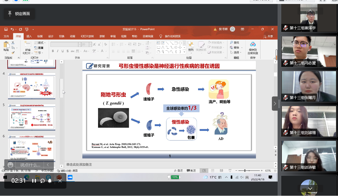 本次论坛自2022年1月8日起在全校范围进行了广泛遴选准备,共有来自第一临床医捕鱼达人 、麻醉捕鱼达人 、药捕鱼达人 、生命科学捕鱼达人 等组建的27个团队的指导老师及选手100余人参加。论坛分为创新研究项目和实验设计项目,捕鱼达人 组织的参赛项目共涉及基础临床、预防医学和中医药学三个学科组,选手们通过PPT汇报和回答评委提问两个环节,从立项依据、技术路线、可行性及创新性等方面阐述团队的作品和观点。经过激烈角逐,最终,基础临床组评选出特等奖2项、一等奖4项、二等奖6项,优胜奖9项;预防医学组评选出一等奖1项,二等奖1项,优胜奖1项;中医药学组评选出一等奖1项,二等奖1项,优胜奖1项。评审组曾令宇教授、张咏梅教授分别对比赛项目进行了精彩点评。她们肯定了指导老师们的辛勤付出、同学们饱满热情的态度和实验创新能力,同时也对参赛项目给予了指导与修改建议。