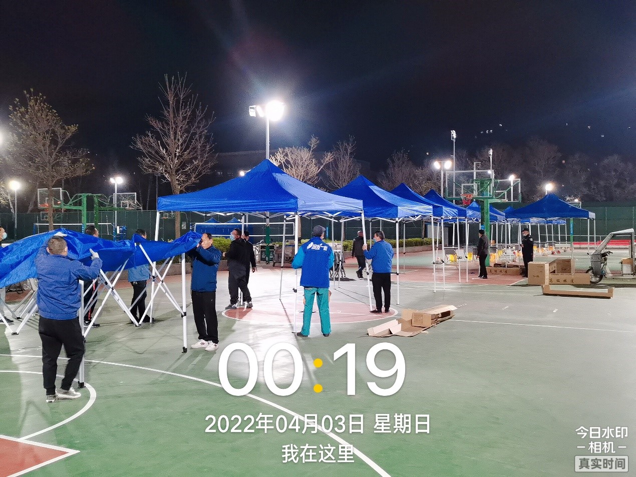 闻令而动,高效搭建防疫基础设施。疫情防控形势下,每日核酸抽检和不定时全员核酸检测已成常态,而如何保障核酸检测点帐篷的科学搭建和有效使用,同样是后勤管理处需要时刻关注的问题。封校之初,由于防疫体系未完全形成,工作人员必须随时待命,及时行动,快速完成检测点帐篷的搭建工作。为了避免耽误第二天的核酸检测工作,搭建往往在晚上进行,而工作到凌晨更是综合服务科的工作常态。每当收到搭建命令,工作人员必须快速安排各项任务,组织多个队伍,分别进行固定搬运帐篷、在规定场地搭建帐篷、装运沙袋固定帐篷等工作。并在有限的时间内高效完成任务;从第一天的24顶帐篷,到后来的50多顶,核酸检测点的每一处布置,都凝聚着后勤管理处人员的辛苦和努力。此外,为了防止搭建好的帐篷夜间被风破坏,后勤管理处还需每晚检查帐篷的牢固情况,如有大风则须及时拆卸棚顶,防止帐篷损坏影响第二天的核酸检测工作。而遇到下雨等恶劣天气时,则会提前在各个宿舍旁重新搭建核酸采集点,避免学生因淋雨而生病的情况。在“让学生少受罪,我们多吃点苦没有什么”的工作准则下,通过工作组的日夜奔波,捕鱼达人 的疫情防控得到了进一步的有力保障。