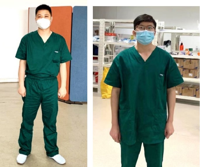 这一次出征还有捕鱼达人 流行病与卫生统计学教研室的三位巾帼女将姜敏、王芳和符金铭老师,三位女老师也和其他男老师一样穿着厚厚的防护服,每天持续工作数小时,他们的头上、脸上都深深的印出了帽子和口罩的勒痕。