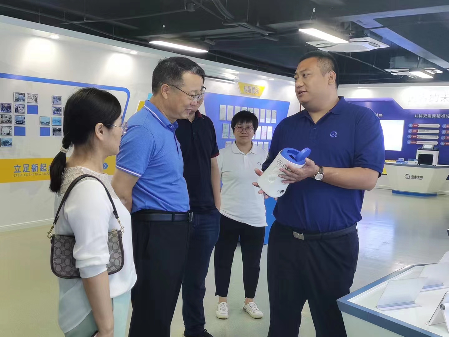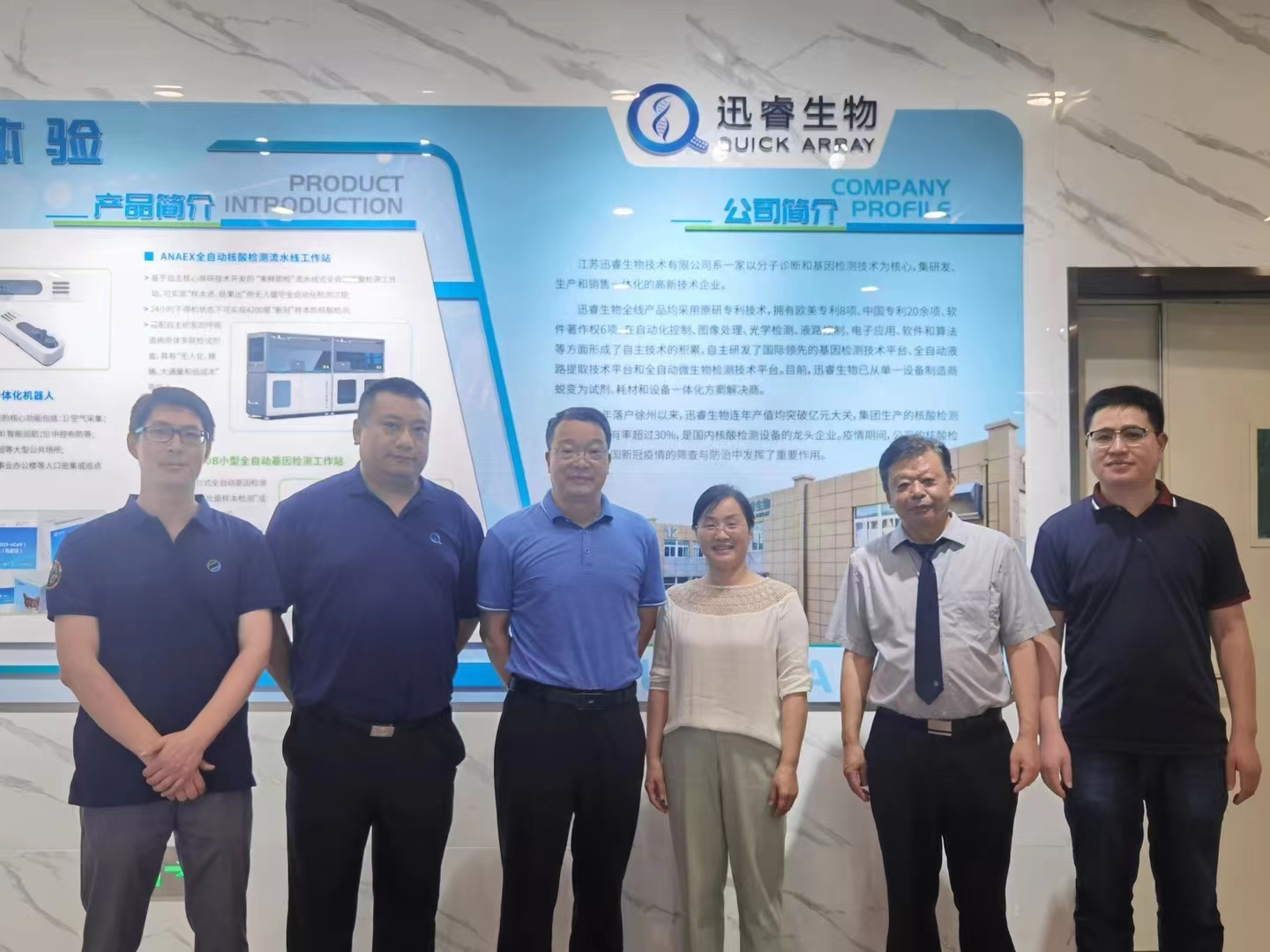 随后,公司副总首席科学家MINGHUA FU博士陪同张玉勤副校长一行参观了江苏迅睿生物技术有限公司的新冠核酸检测设备生产车间、体外诊断试剂研发实验室和干细胞研究中心。