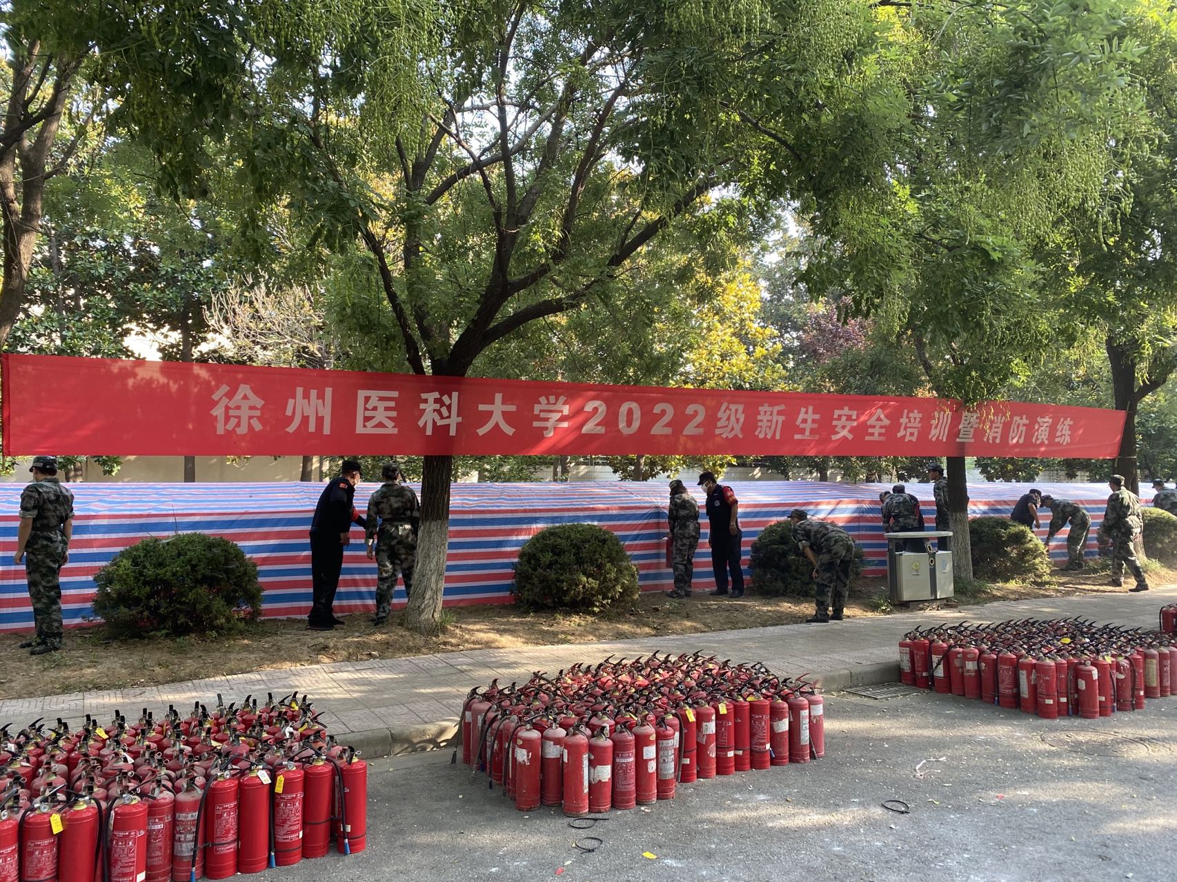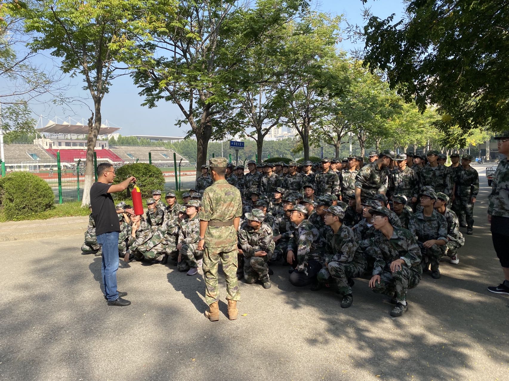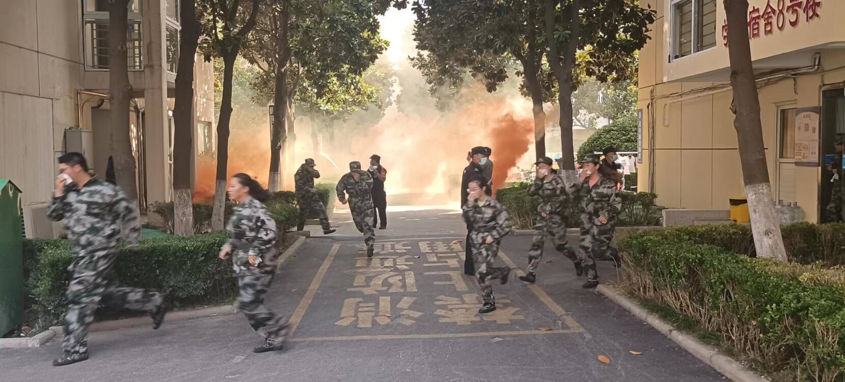 此次演练活动为新生上了一堂生动的安全教育课,丰富了军训内容,调动了同学们学习消防安全知识的积极性,增强了学生自身抵御火灾和自防自救的能力。