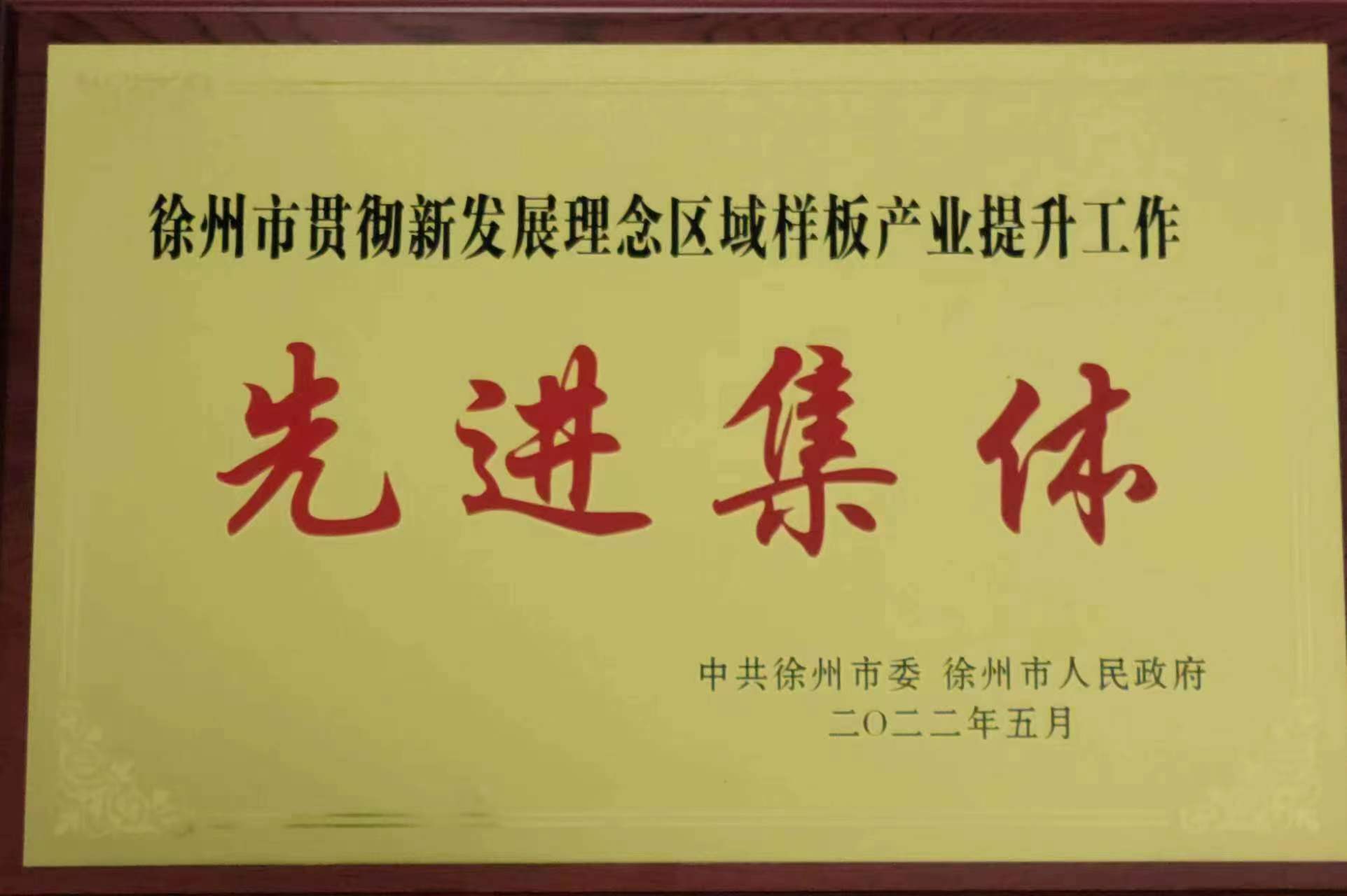近日,捕鱼达人 资产经营有限公司荣获”徐州市贯彻新发展理念区域样板产业提升工作先进集体”荣誉称号。