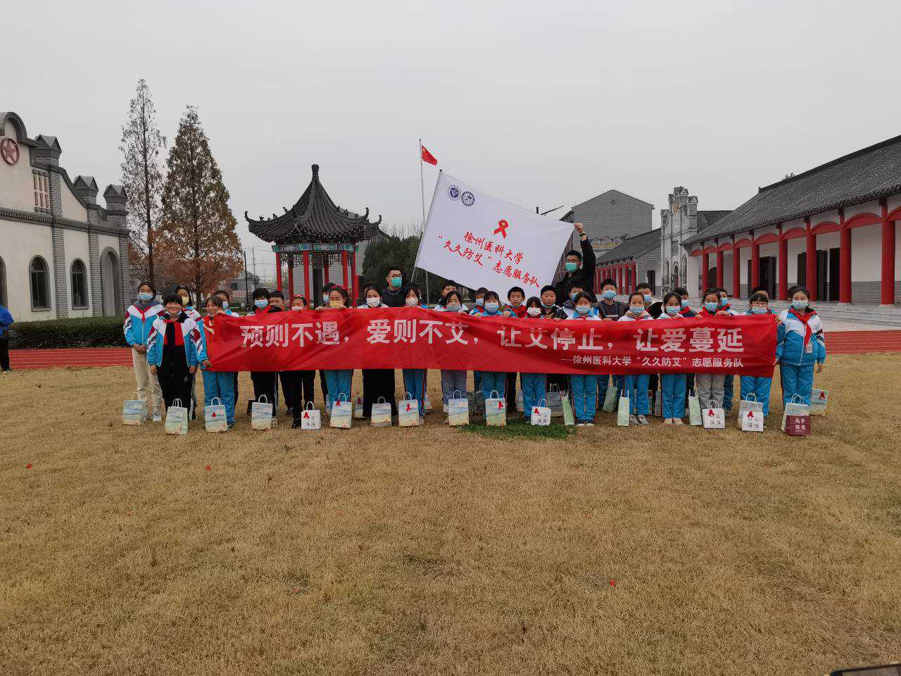 青少年群体是预防艾滋病的主力军,对青少年儿童的防艾科普教育显得尤为重要。“愿与你携手,配上红丝带,驱散你心底艾的雾霾”,在沛县张寨镇青敦寺小学五年级一班教室内,同学们在志愿者的带领下一起学习“久久防艾”原创手势舞,进一步加深了对艾滋病的认识。志愿者们还为同学们上了一堂生动的防艾科普宣教课,让他们了解艾滋病的相关知识,知晓艾滋病的防治措施,培养“生命至上、健康平等”的意识。操场上,志愿者们与同学们做起了防艾趣味游戏,寓教于乐,寓学于趣。