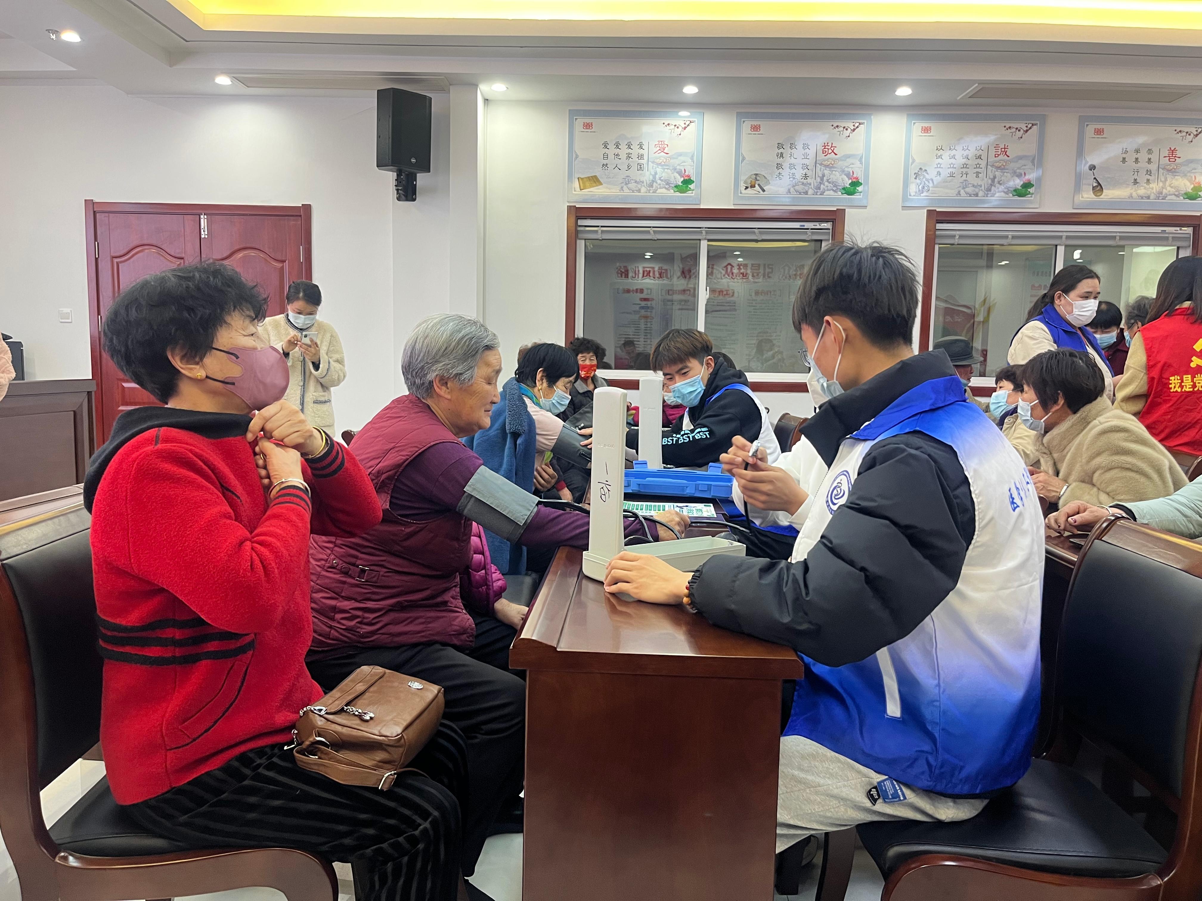关爱老人健康,用情温暖夕阳红。在乔家湖社区活动中心,志愿者们为老人免费测量血压,与老人交谈了解老人健康状况、饮食起居,向老人介绍老年人多发病、常见病的预防及健康保健知识,提醒健康饮食、规律生活、适当锻炼,普及健康生活的理念,增强老人健康保健意识。